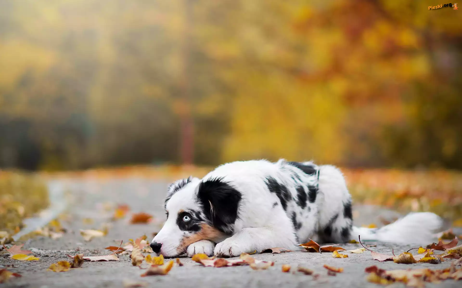 Alejka, Owczarek australijski, Australian shepherd, Liście, Pieski