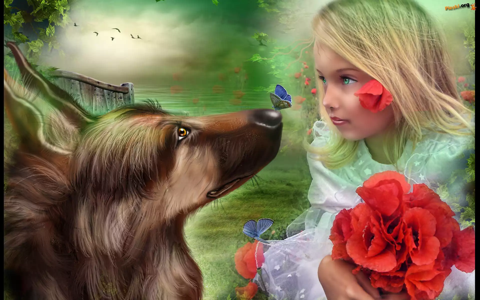 Dziewczynka, Chart, Maki, Pieski