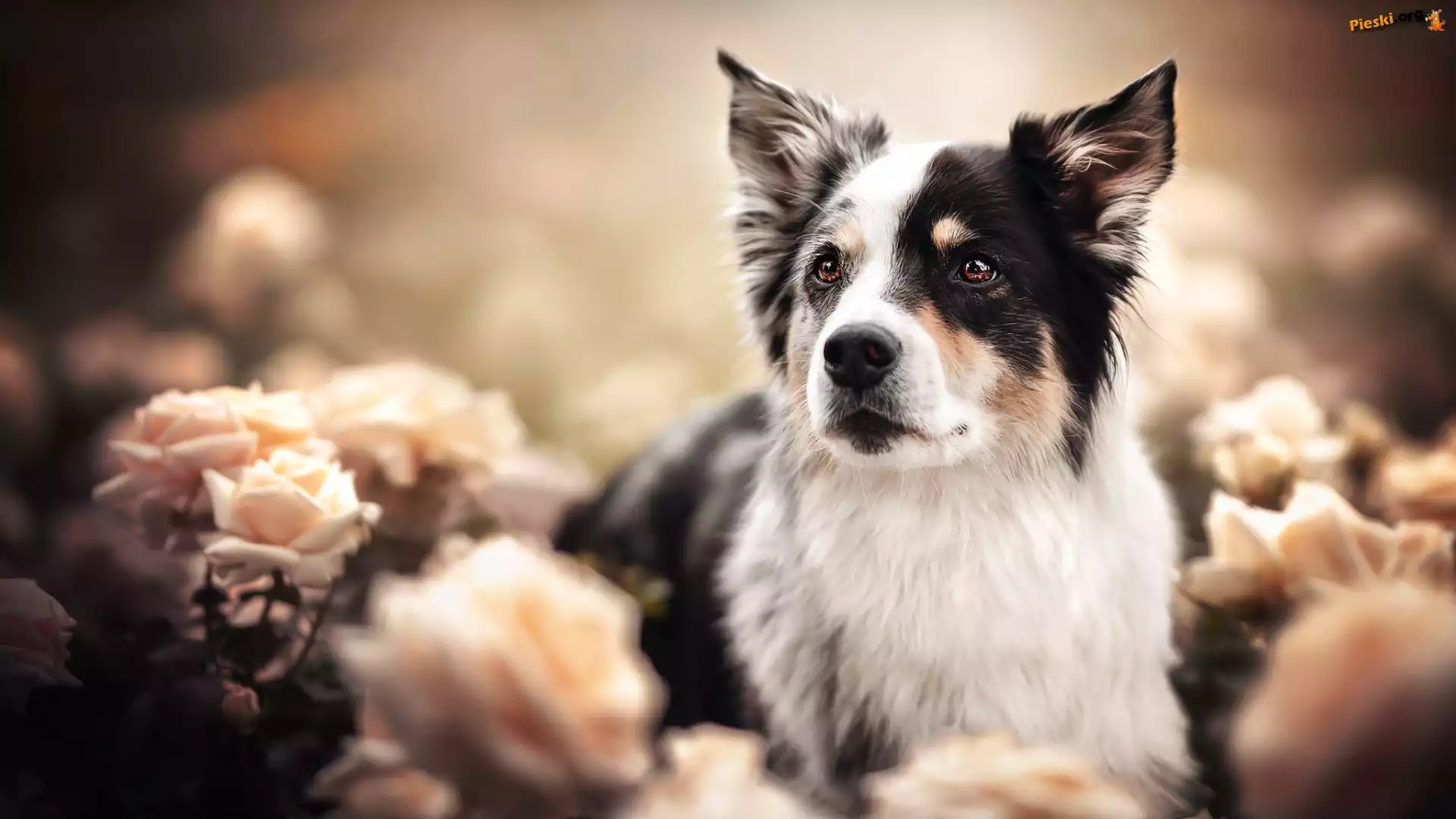 Róże, Czarno-biały, Pies, Owczarek australijski, Rozmycie