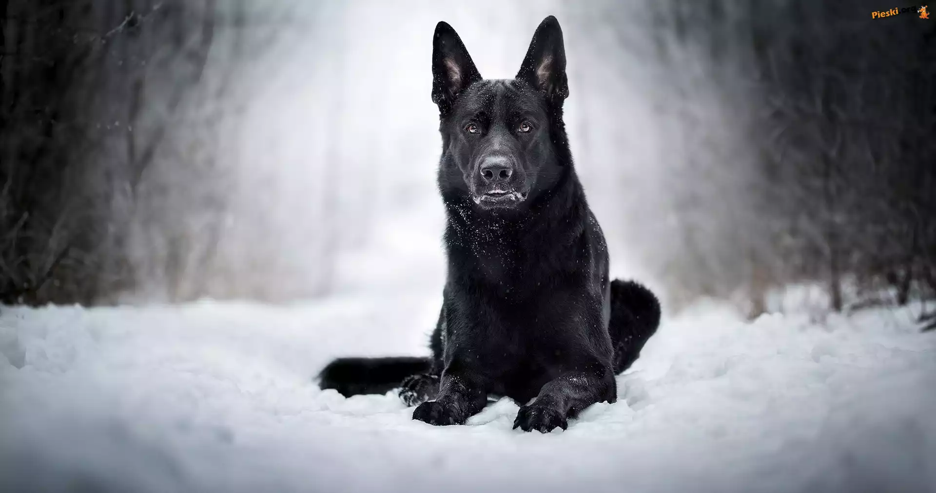 Czarny owczarek niemiecki, Pies, Śnieg, Pieski