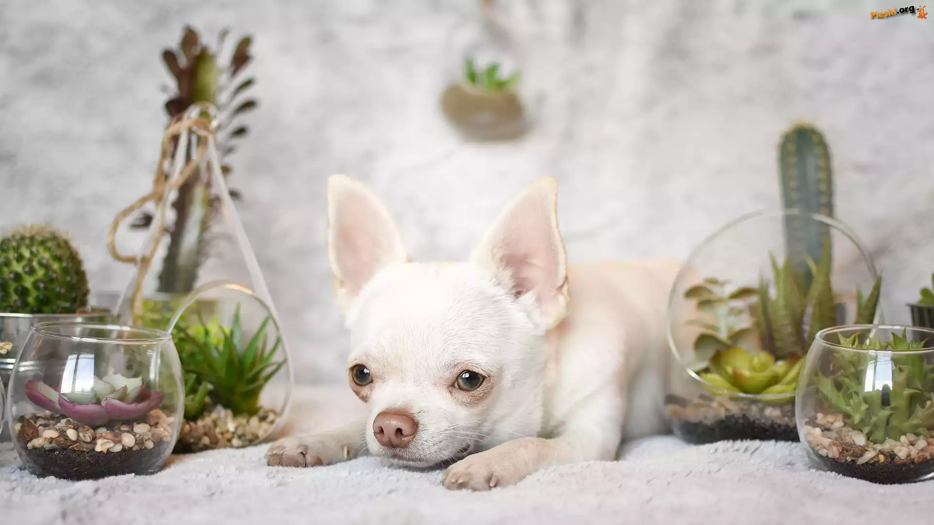 Dekoracje, Pies, Chihuahua krótkowłosa, Rośliny
