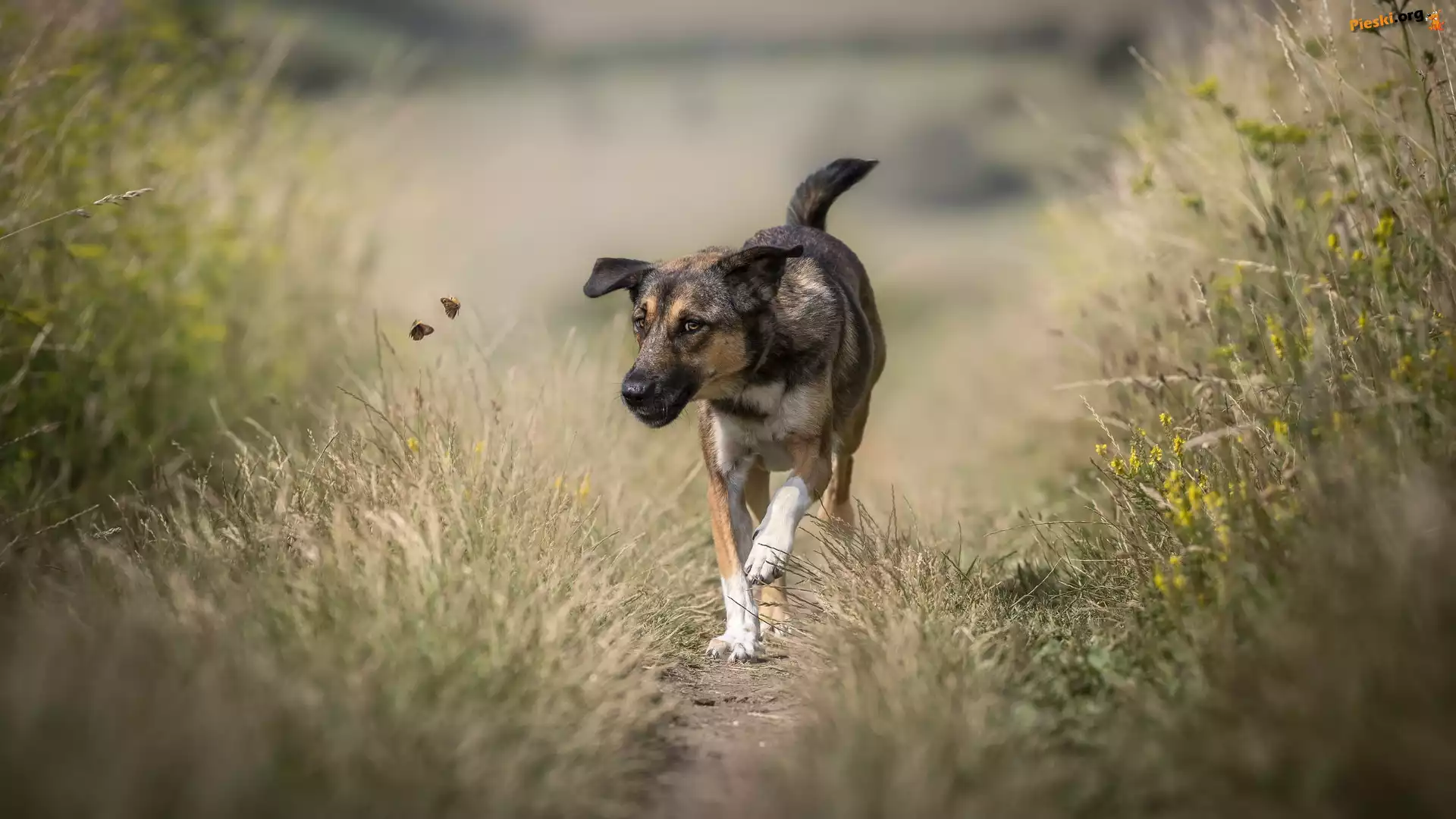 Dwa, Pies, Ścieżka, Motyle