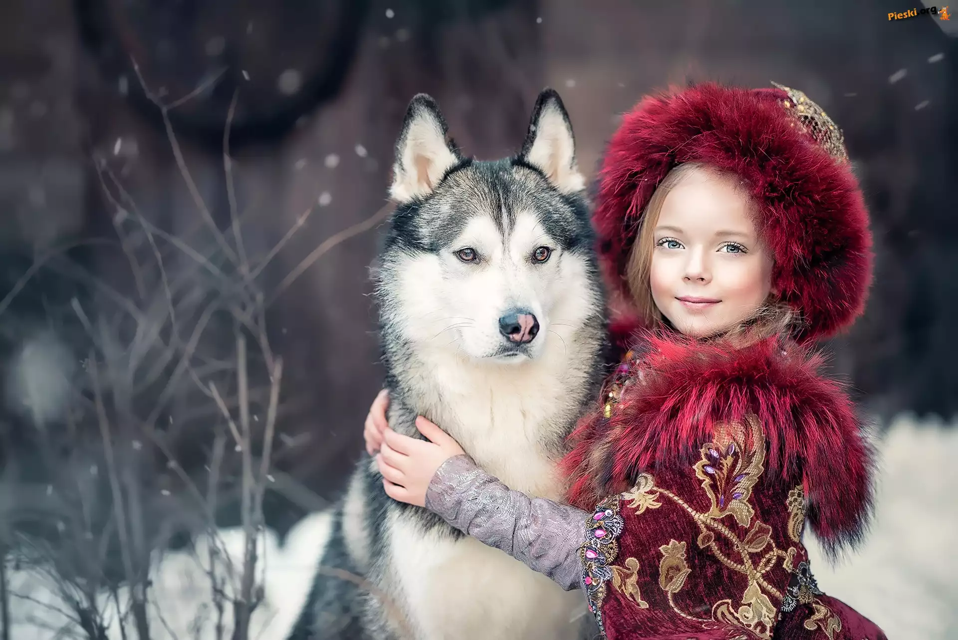 Dziewczynka, Pies, Siberian husky