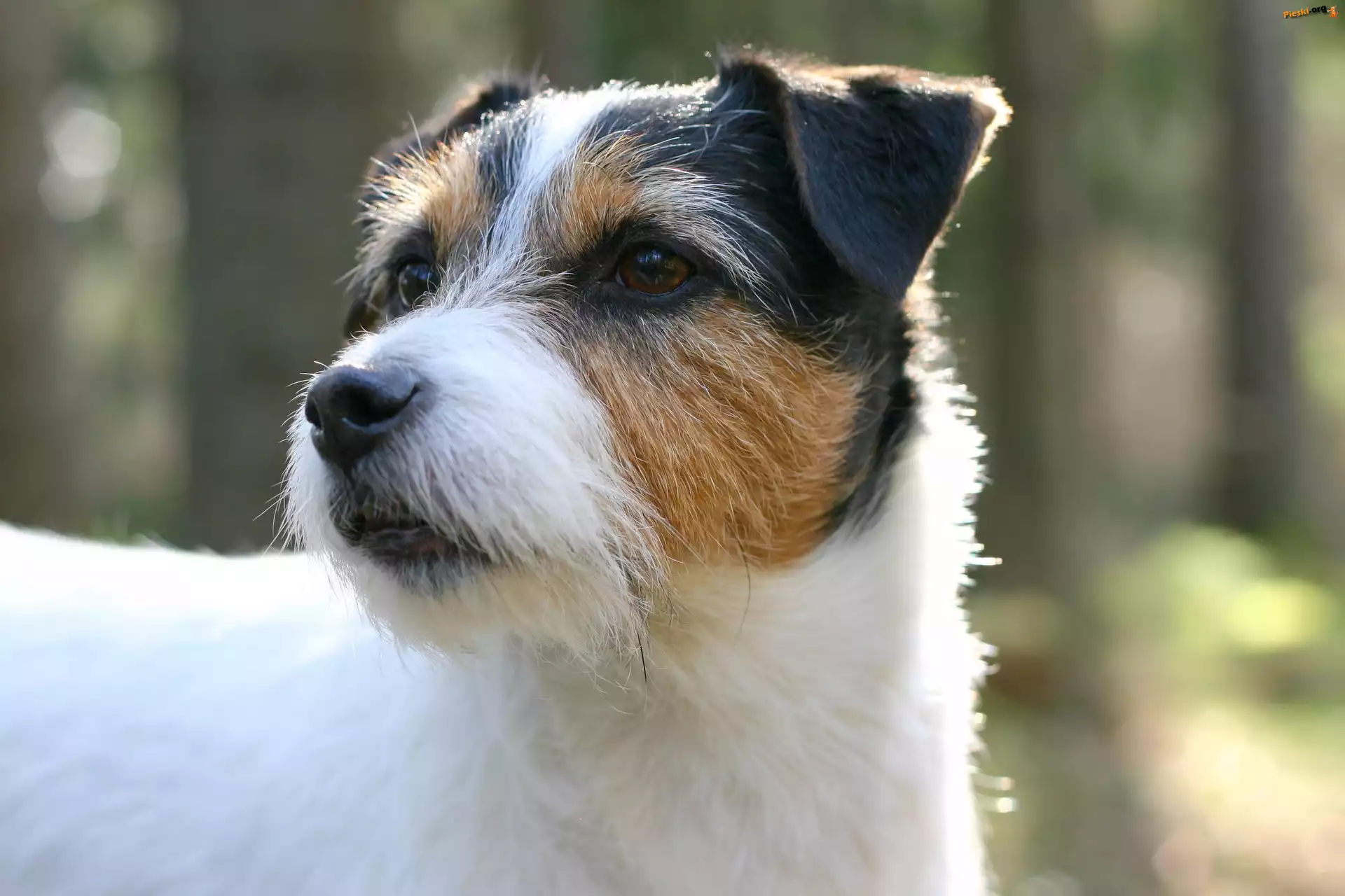 głowa, Parson Russell Terriera Parson Russell Terrier, Las Parson Russell Terrier, most Domy, Ubranko, Parson Russell Terrier Polana, Chłopiec, Mały, Szczeniaczek, Las