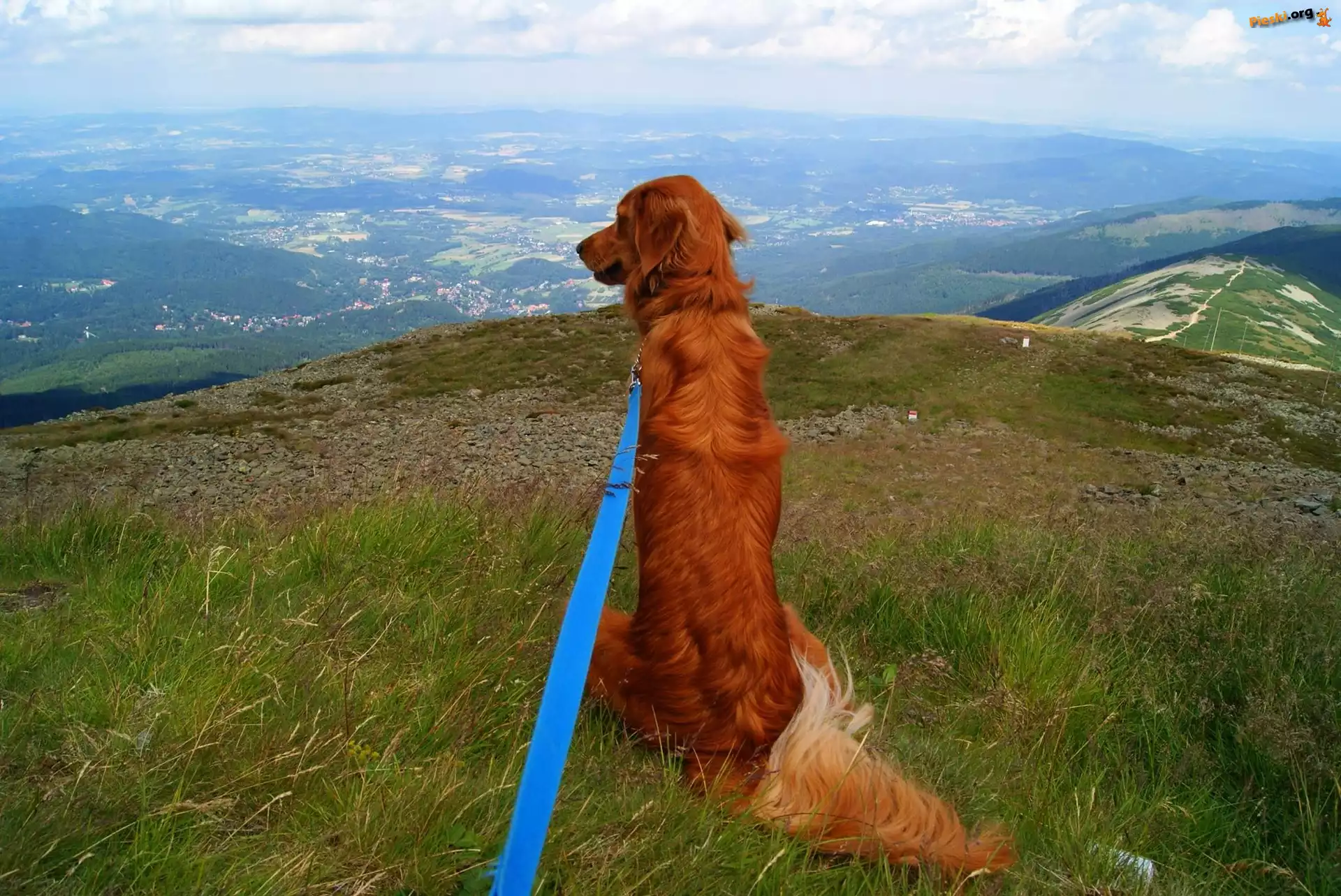 Krajobraz, Golden Retriever, Pieski