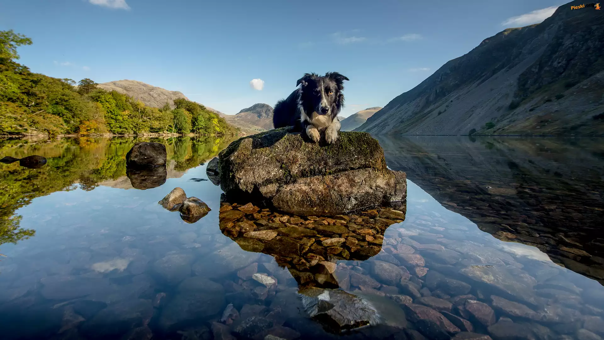 Góry, Border, Pies, Woda, Skała, Collie, Pieski