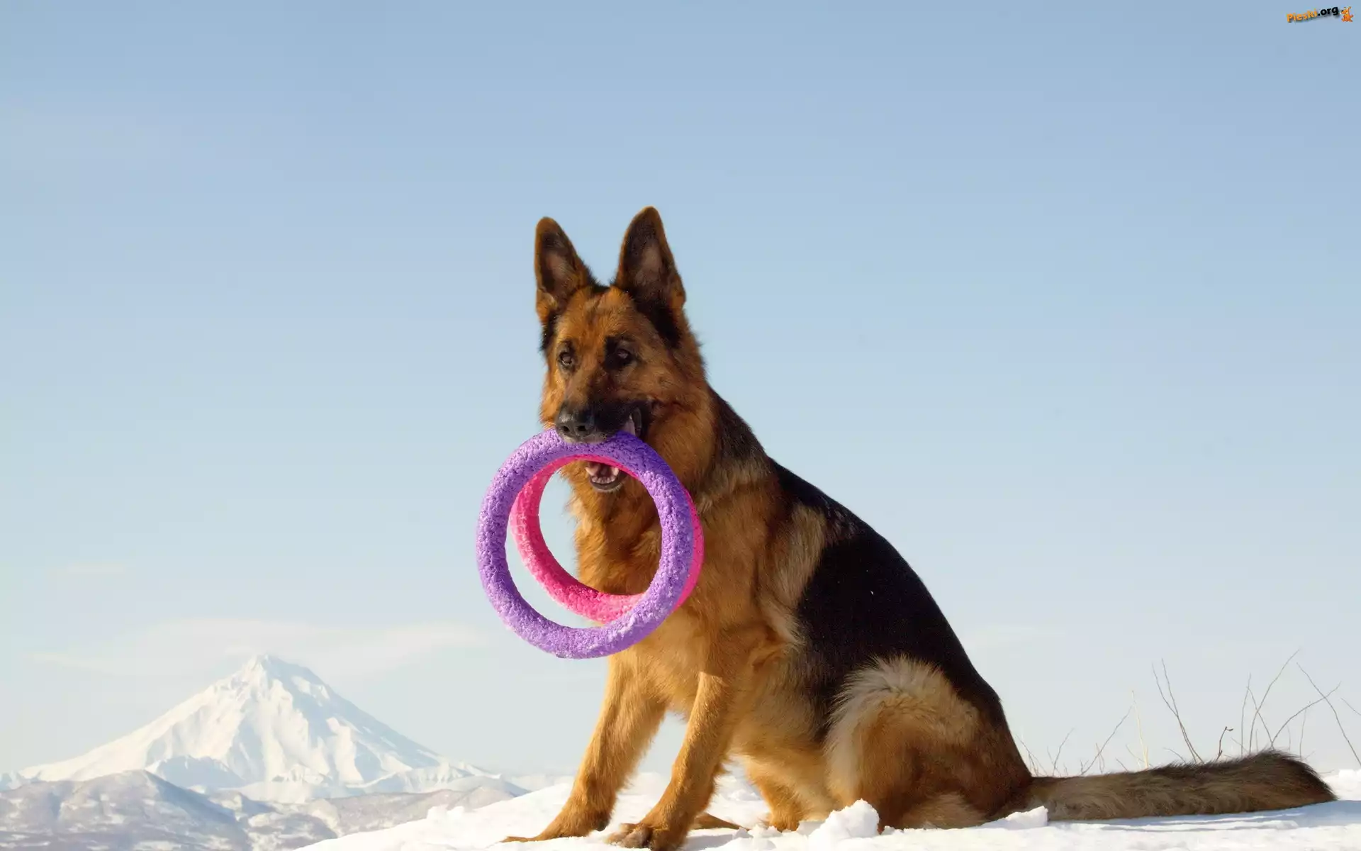 Góry, Owczarek, Zabawka, Zima, Pieski