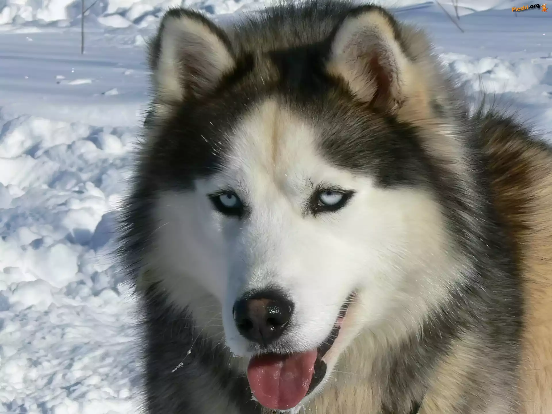 język, Siberian Husky, śnieg