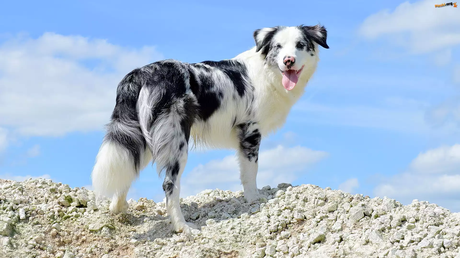Kamienie, Owczarek australijski, Pies, Skarpa, Niebo, Pieski