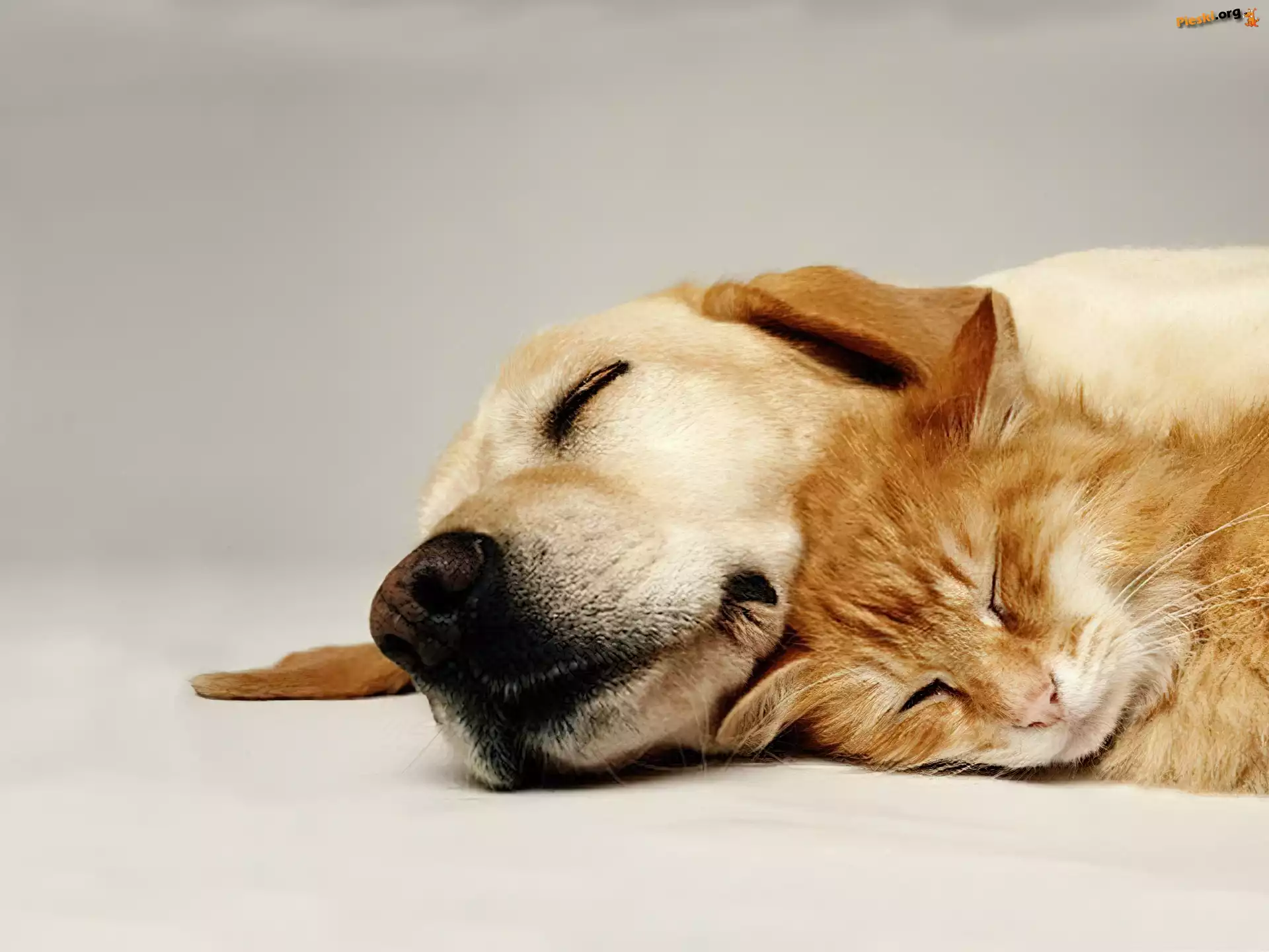Kot, Śpiące, Pies, Głowy, Pieski