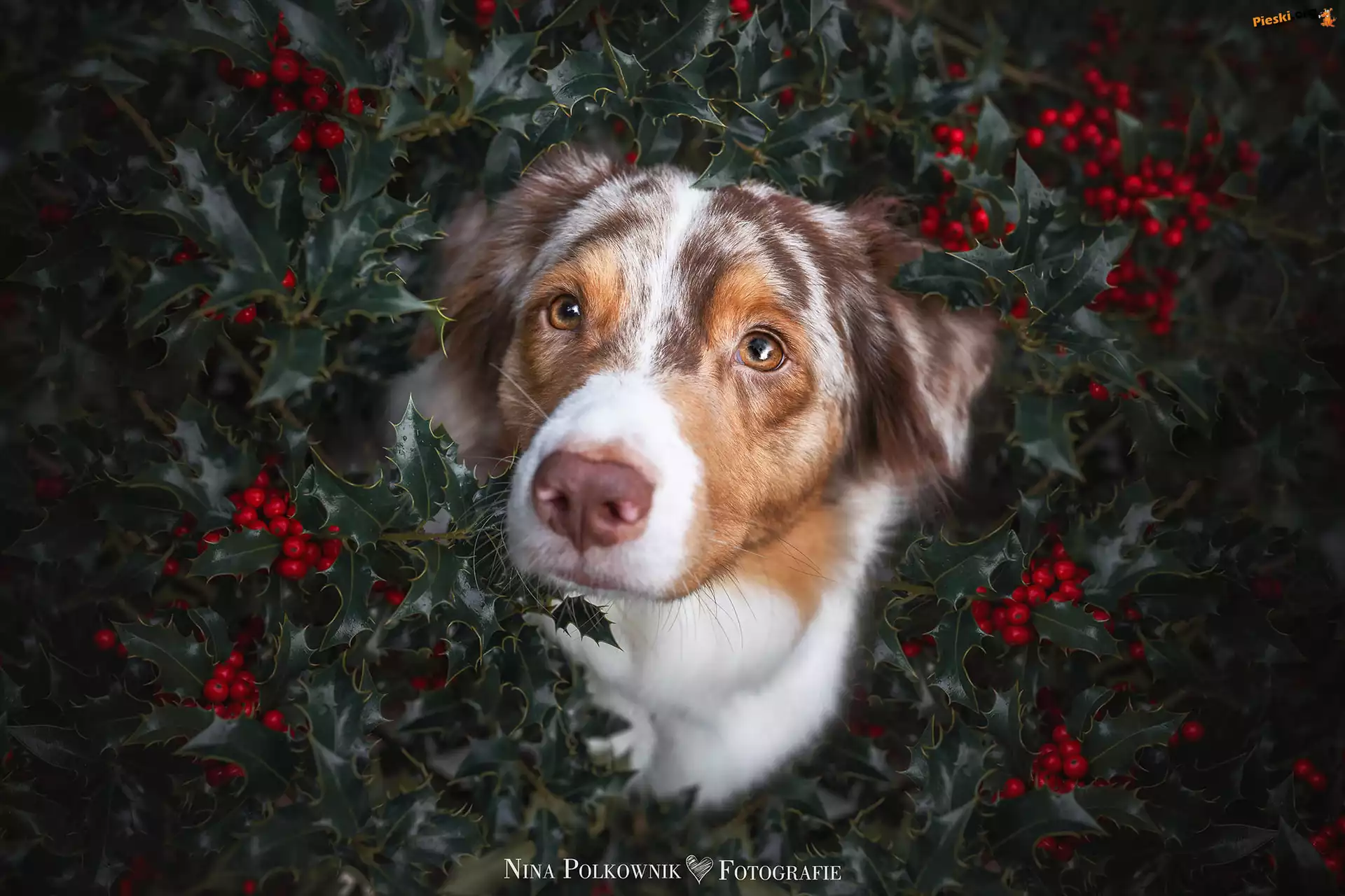 Ostrokrzew, Jagody, Pies, Krzew, Owczarek australijski, Pieski