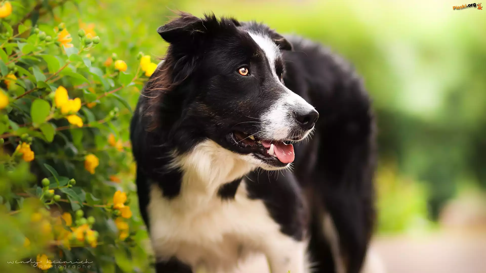 Krzew, Pioes, Border collie, Kwiaty