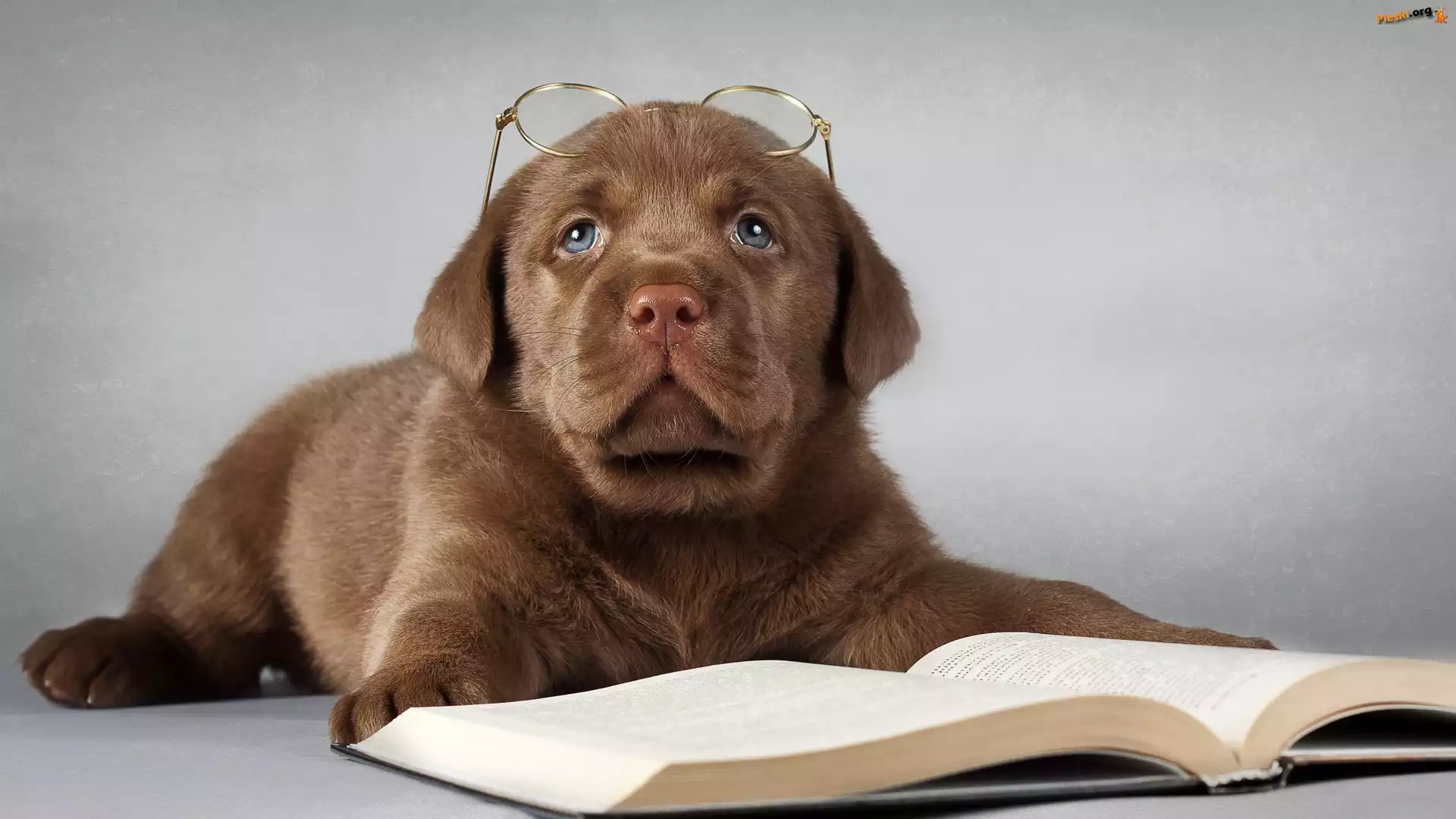 Książka, Szczeniak, Smutny, Labrador retriever, Okulary, Pieski