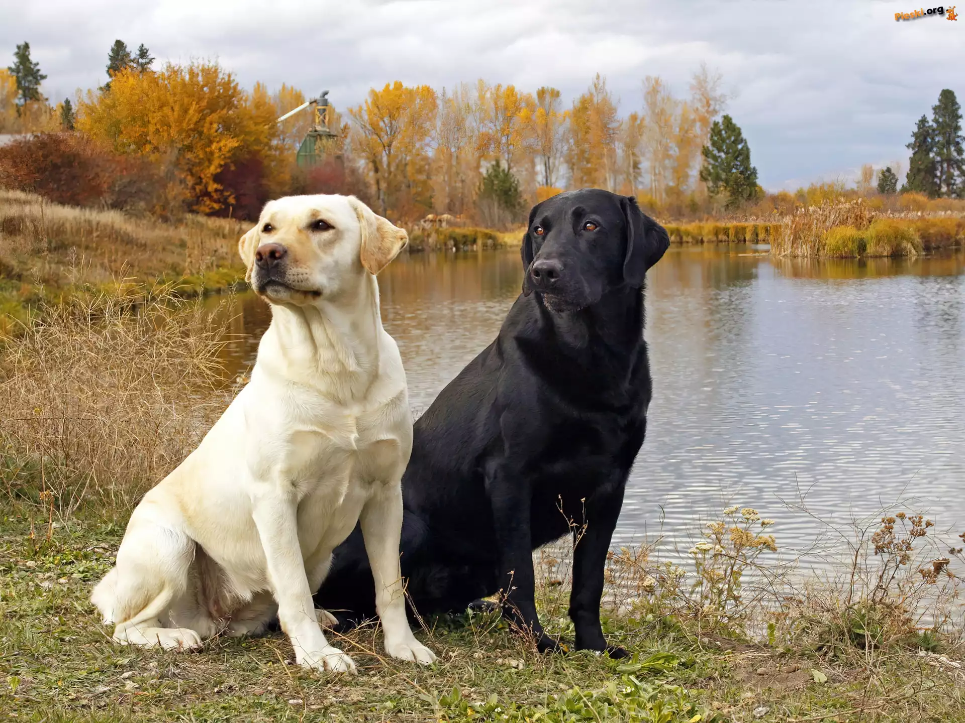 Jezioro, Labradory, Dwa, Psy, Pieski