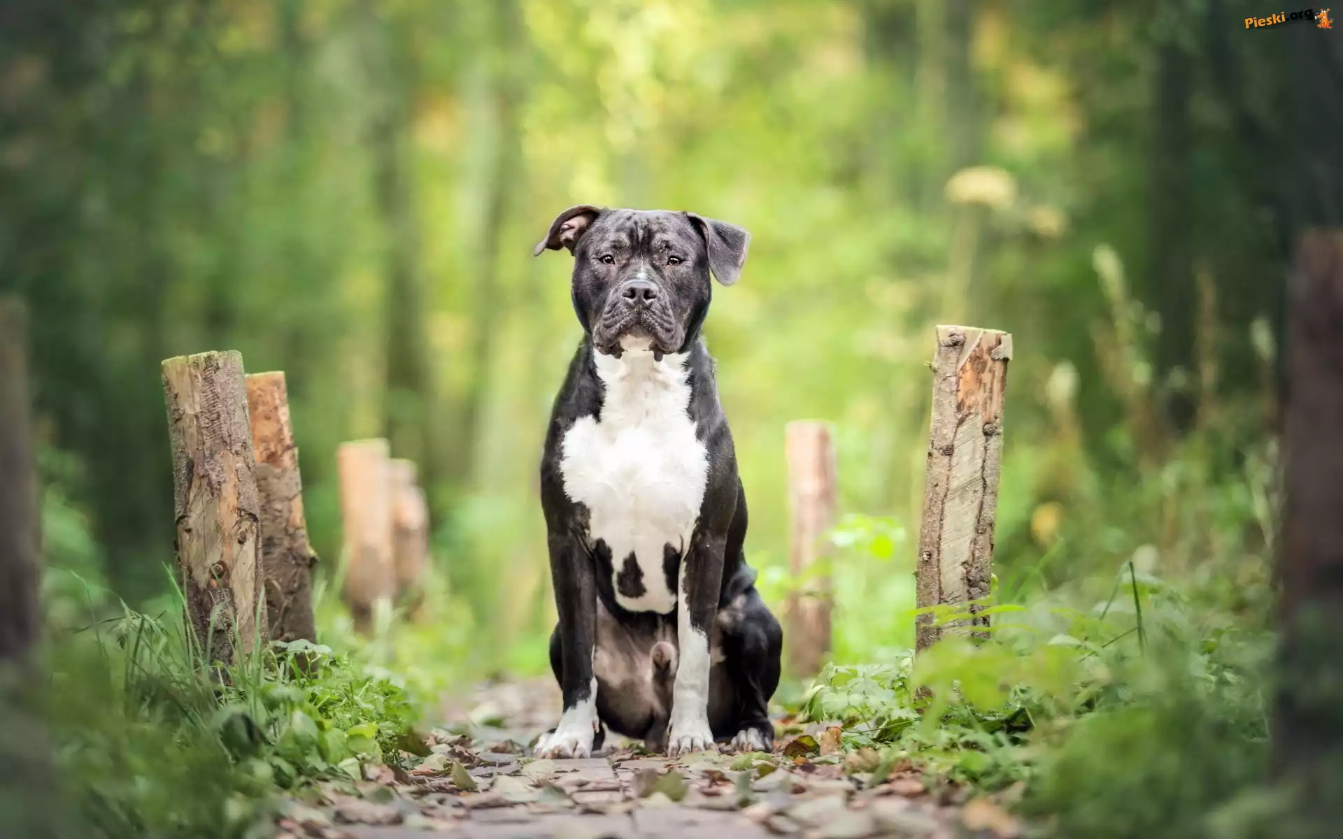 Las, Pit Bull Terrier, Ścieżka, Pieski
