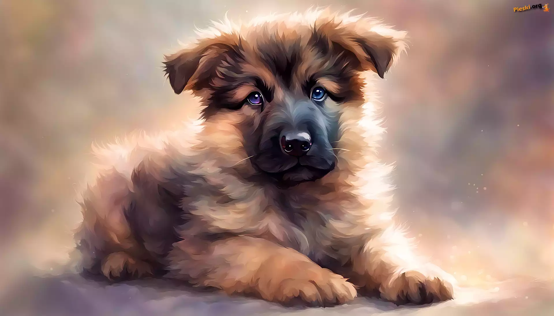 Grafika, Szczeniak, Pies, Leżący, Pieski