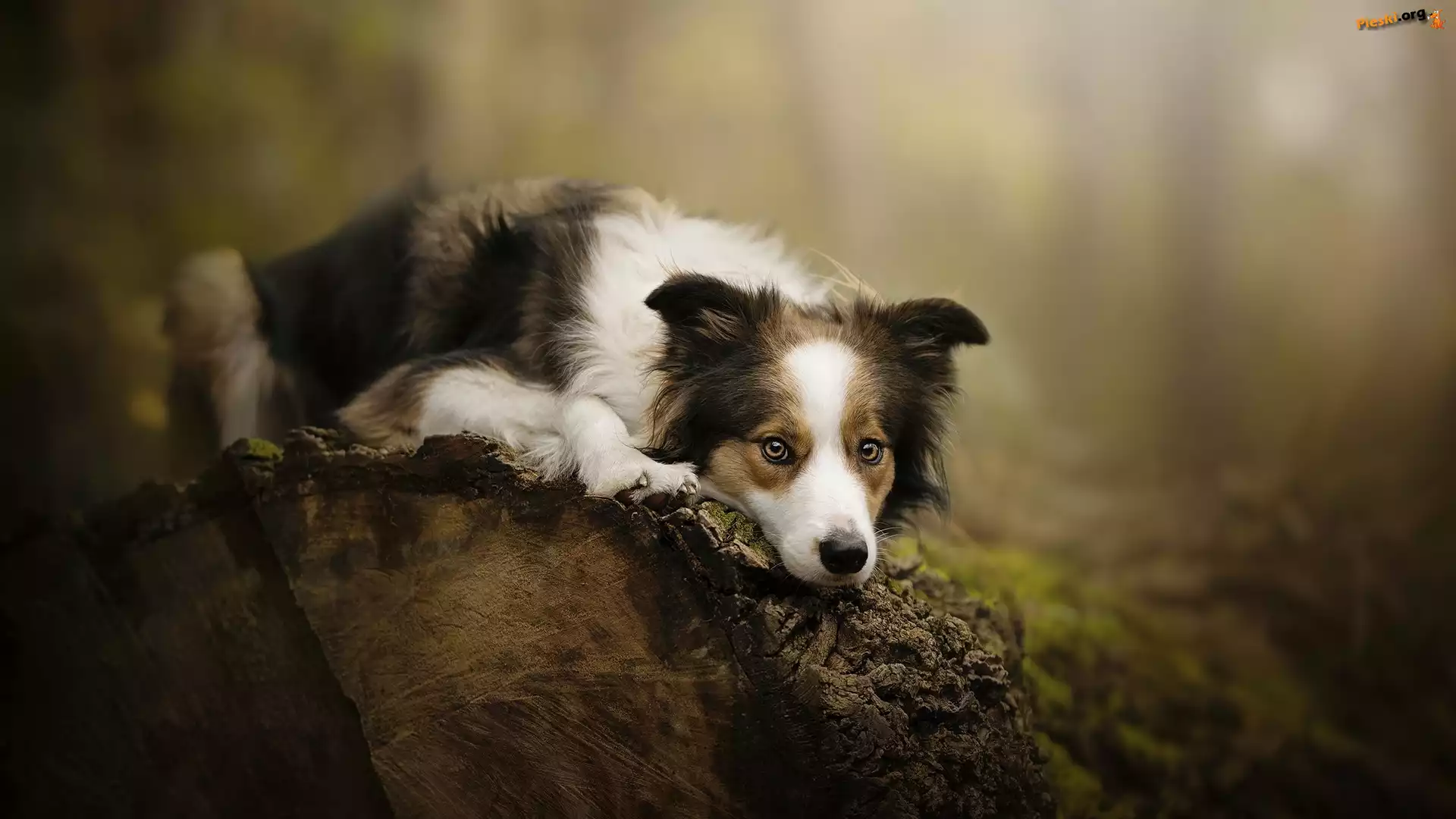 Mordka, Pies, Border collie, Kłoda, Pieski