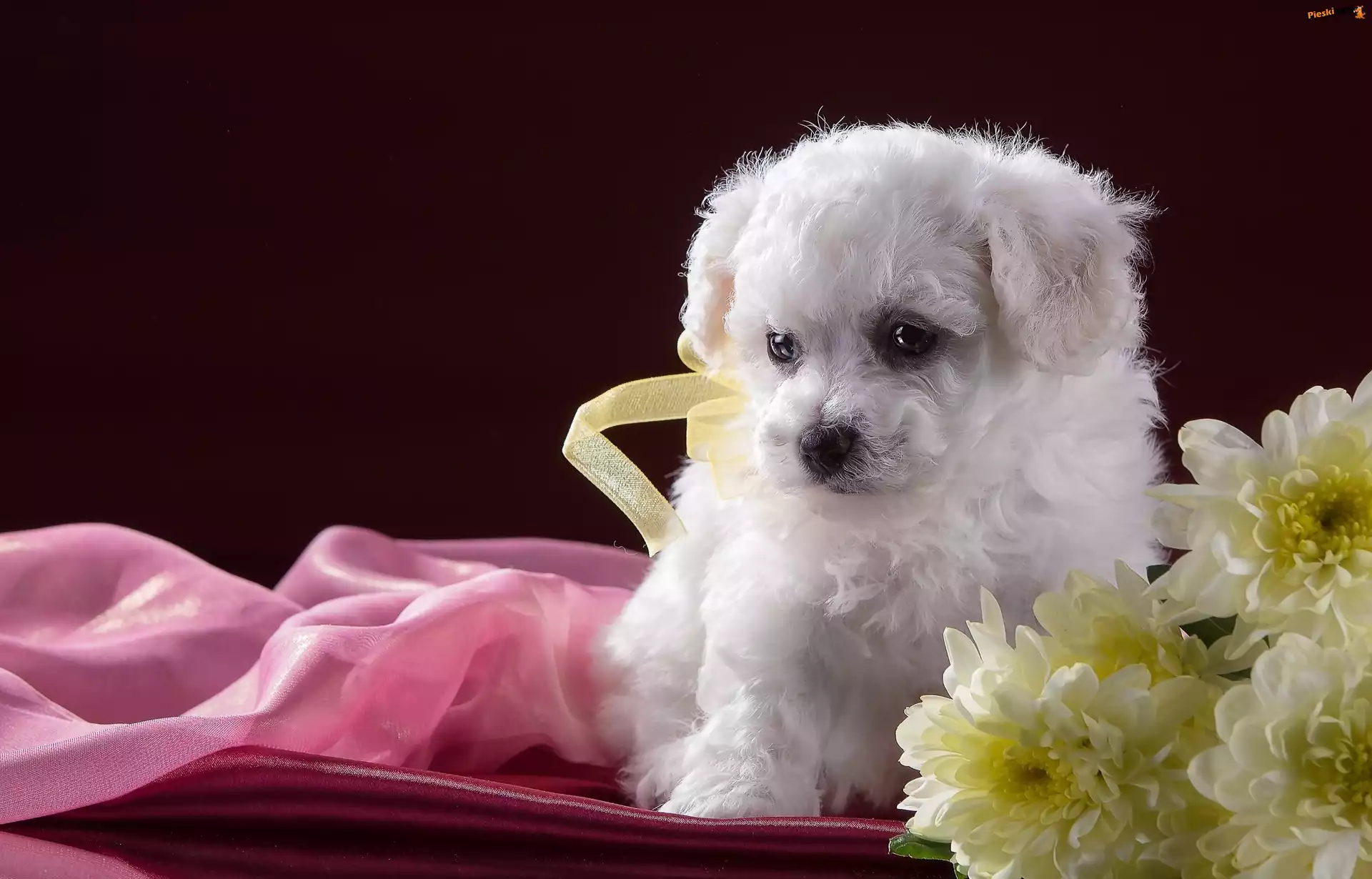 Żółte, Szczeniaczek, Słodki, Bichon Frise, Chryzentamy, Pieski
