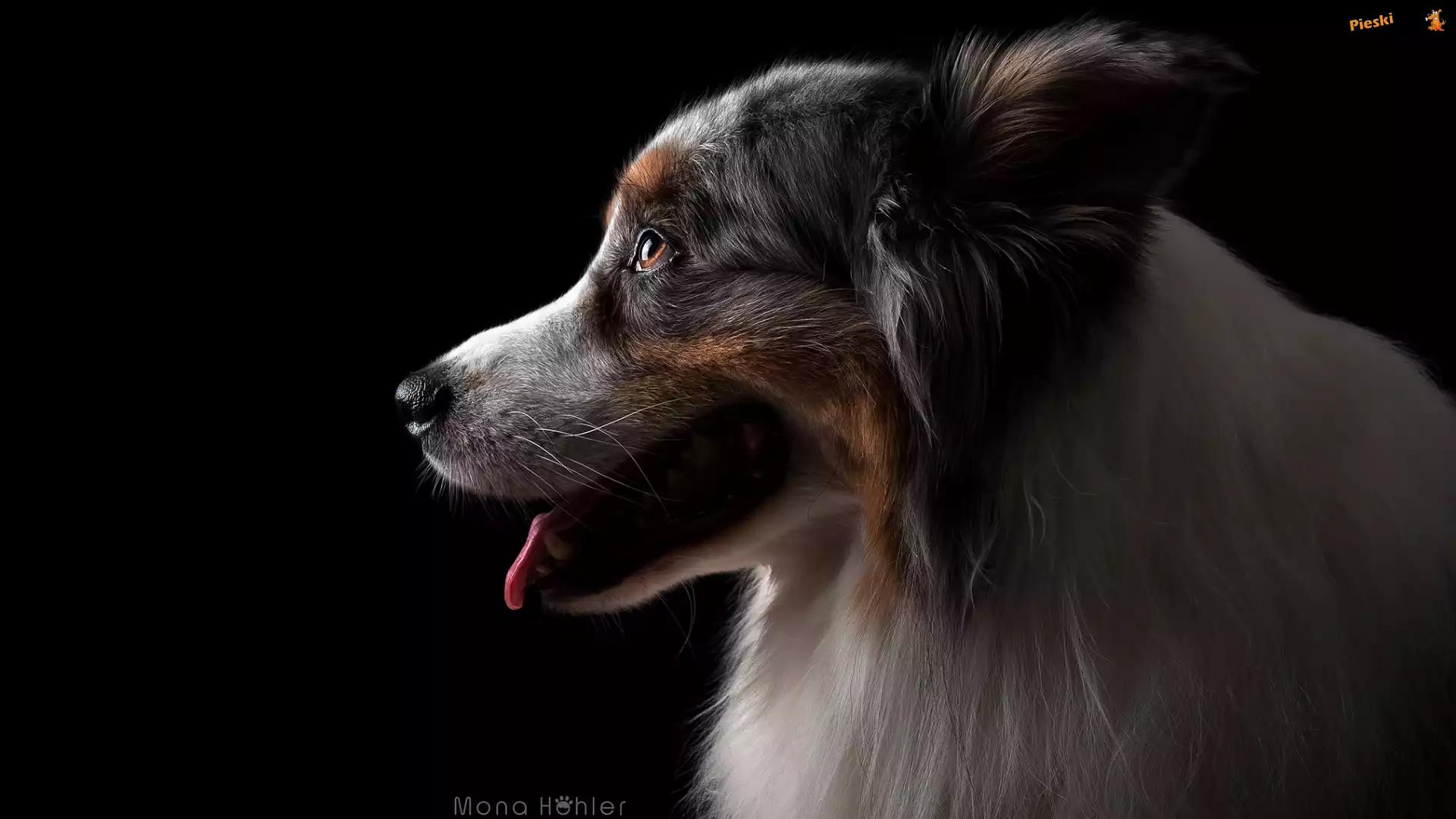 Owczarek australijski, Pies, Profil, Ciemne tło