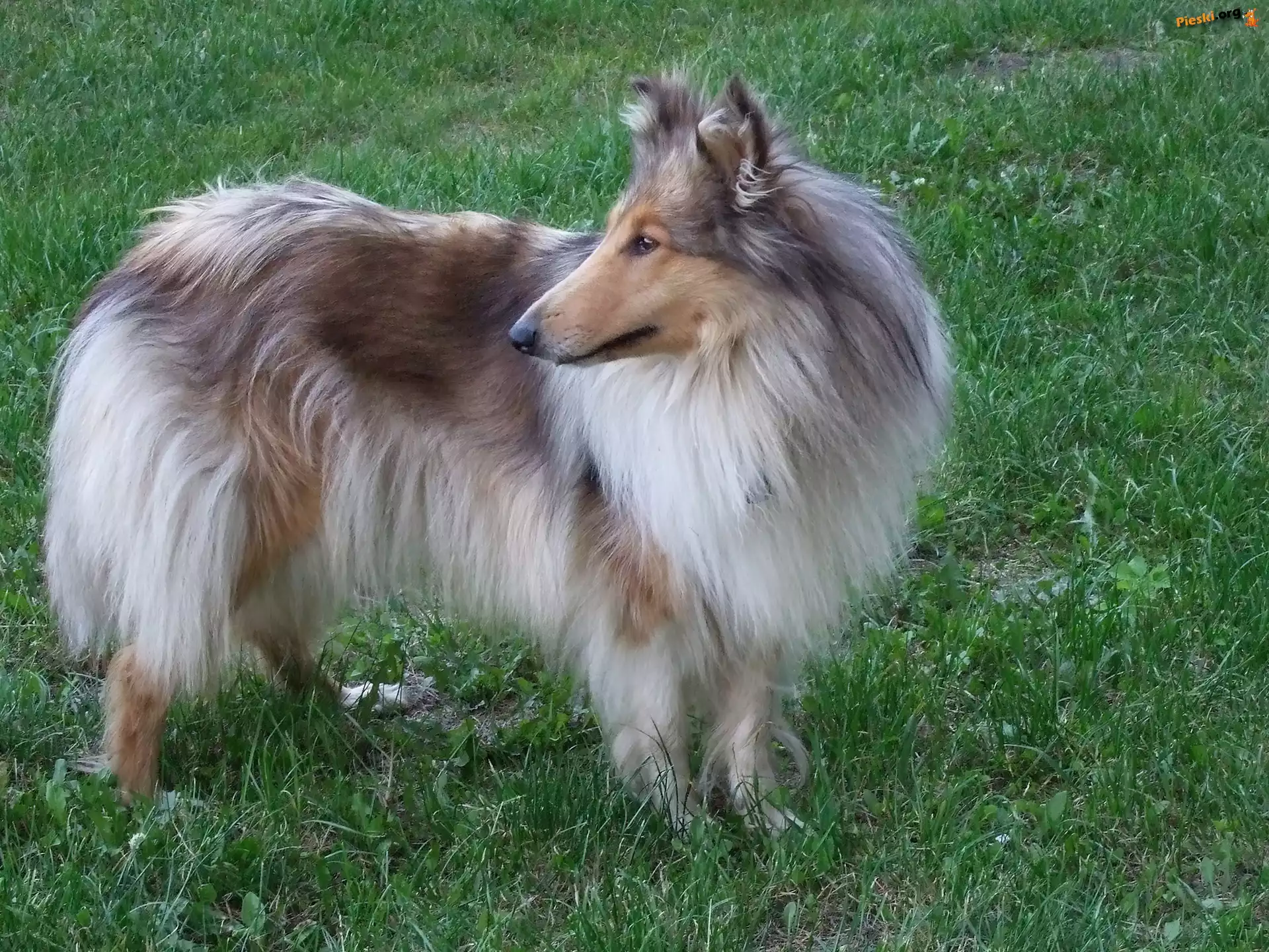 Owczarek szkocki długowłosy, zielona, trawa