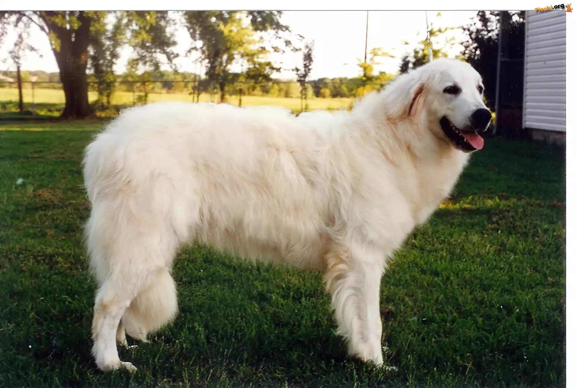 Owczarek węgierski Kuvasz, zielona, trawa, Pieski