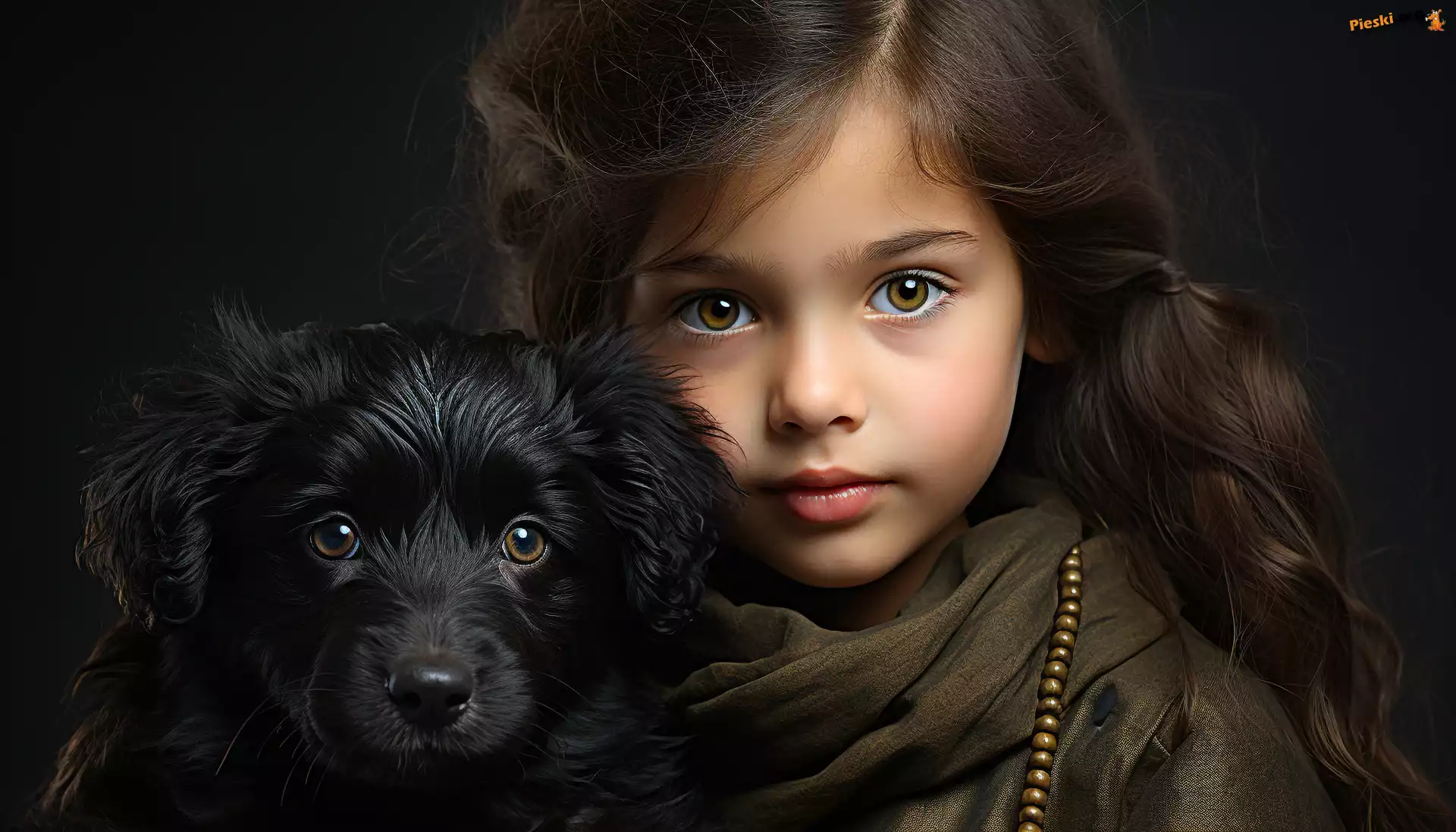 Włosy, Pies, Dziewczynka, Czarny, Długie, Pieski