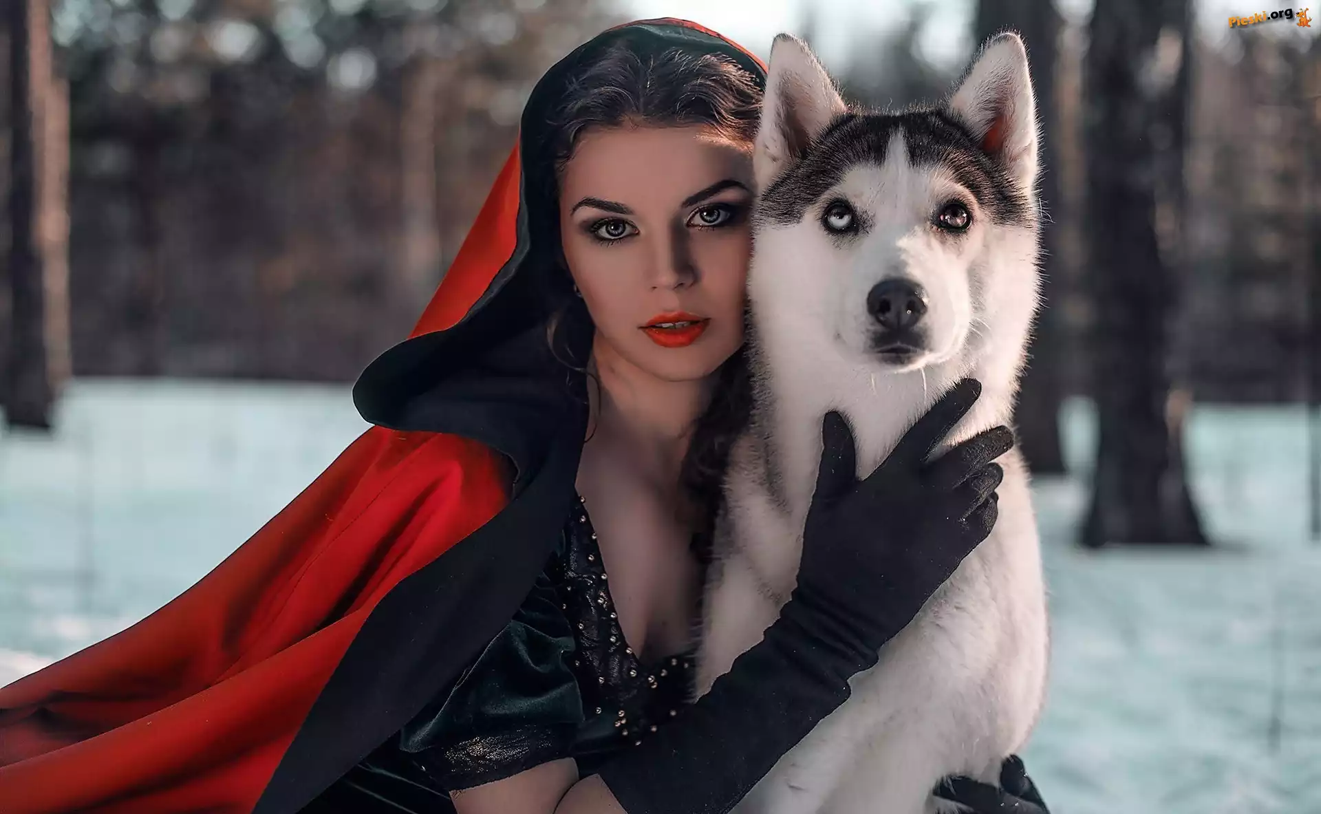 Pies, Czerwona, Kobieta, Peleryna, Husky