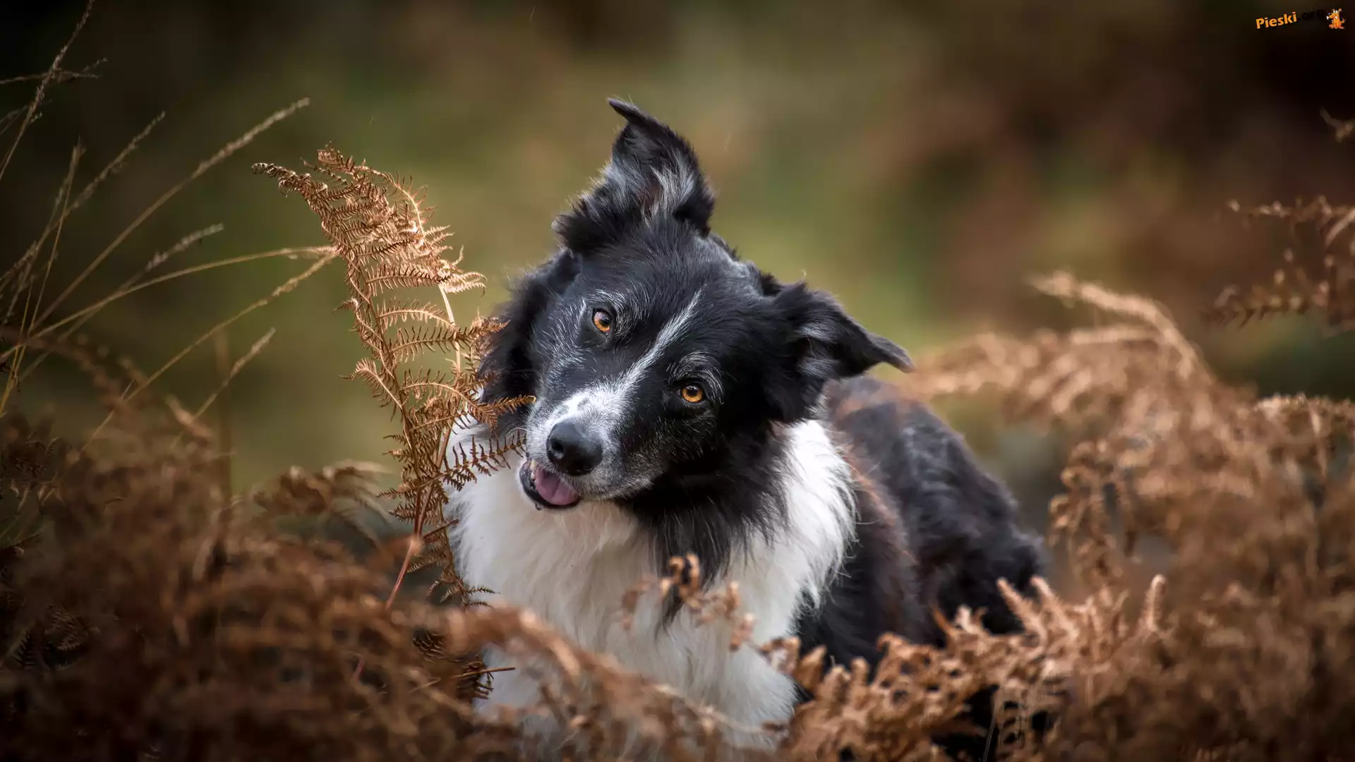 Uschnięte, Pies, Biało-czarny, Border collie, Paprocie, Pieski