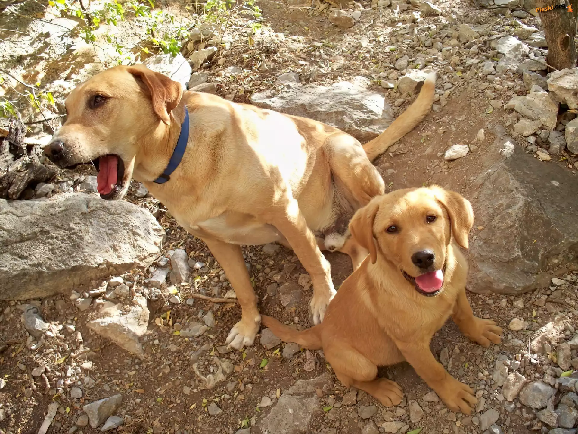 Pieski, Labradory, Dwa, Kamienie, Rude, Pieski