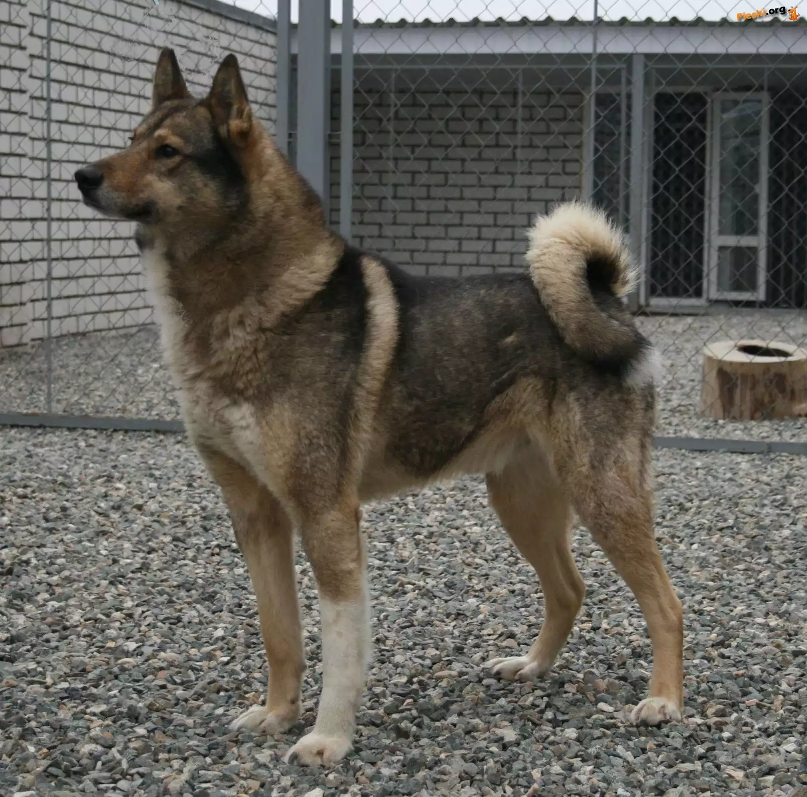 Łajka zachodniosyberyjska, płot, kamyki, Pieski