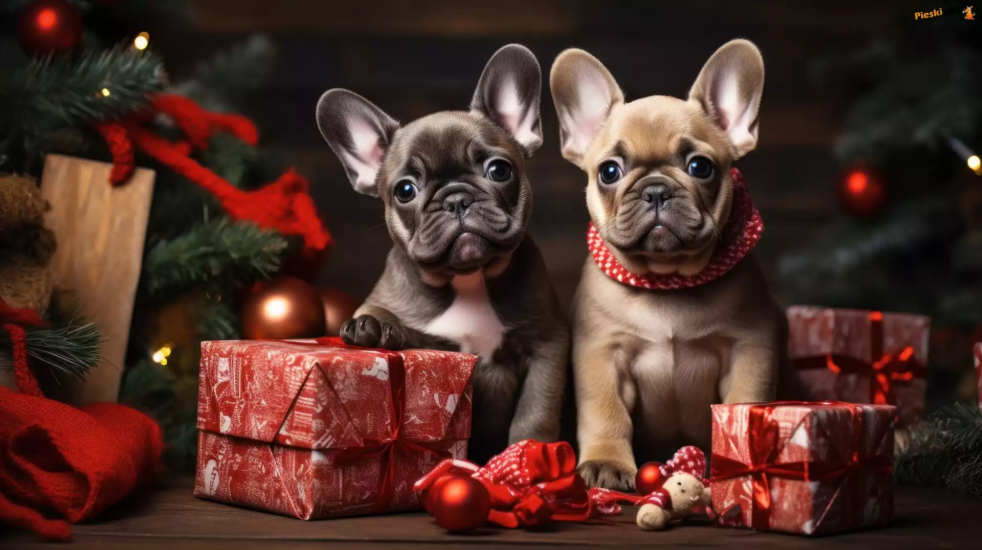 Grafika, Dwa, Psy, Prezenty, Buldogi francuskie, Szczeniaki, Pieski