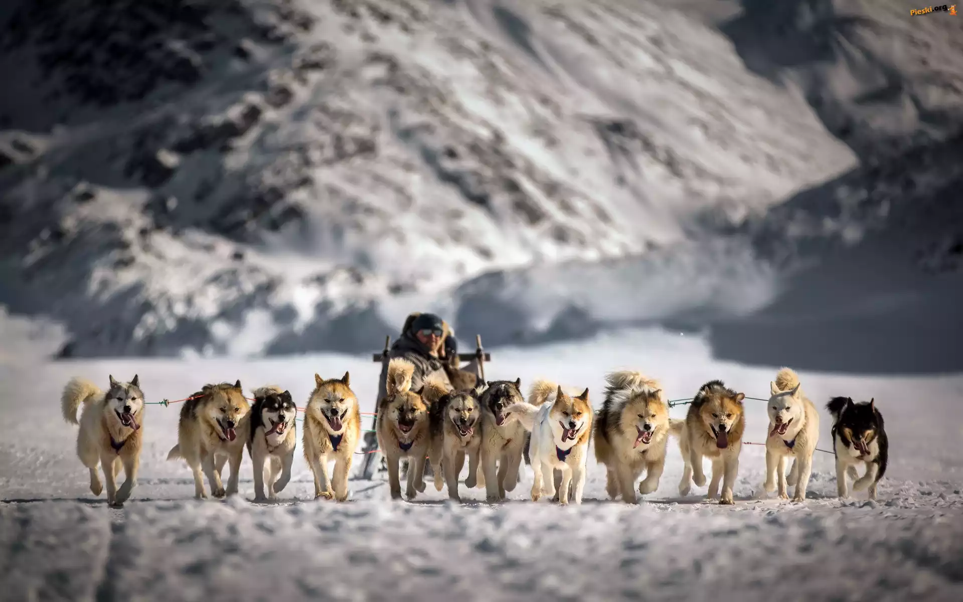 Psi, Zima, Sanie, Zaprzęg, Pieski