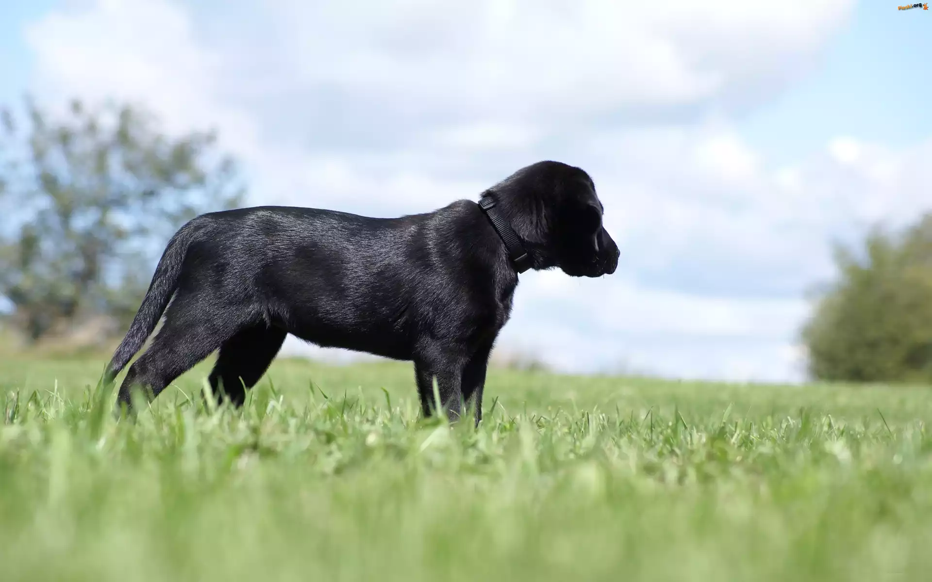 Retriever, Czarny, Labrador, Trawa, Pieski