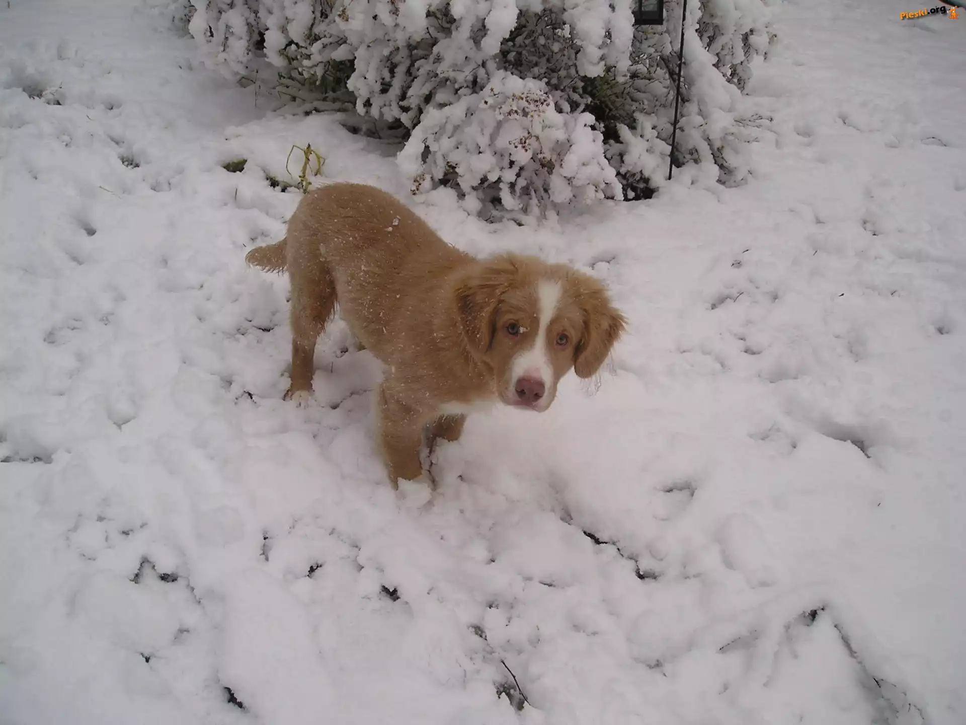 Retriever z Nowej Szkocji, Szczeniak, śnieg