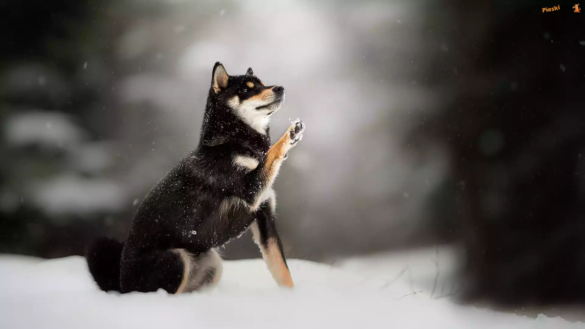 Rozmyte, Shiba inu, Pies, Śnieg, Tło