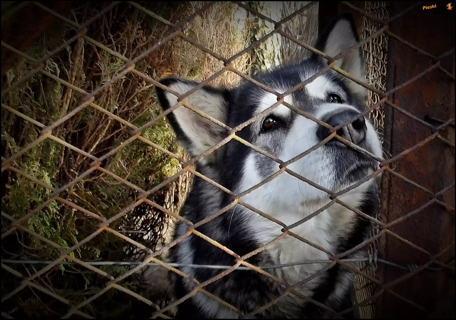 Ogrodzenie, Siatka, Pies, Spojrzenie, Pieski