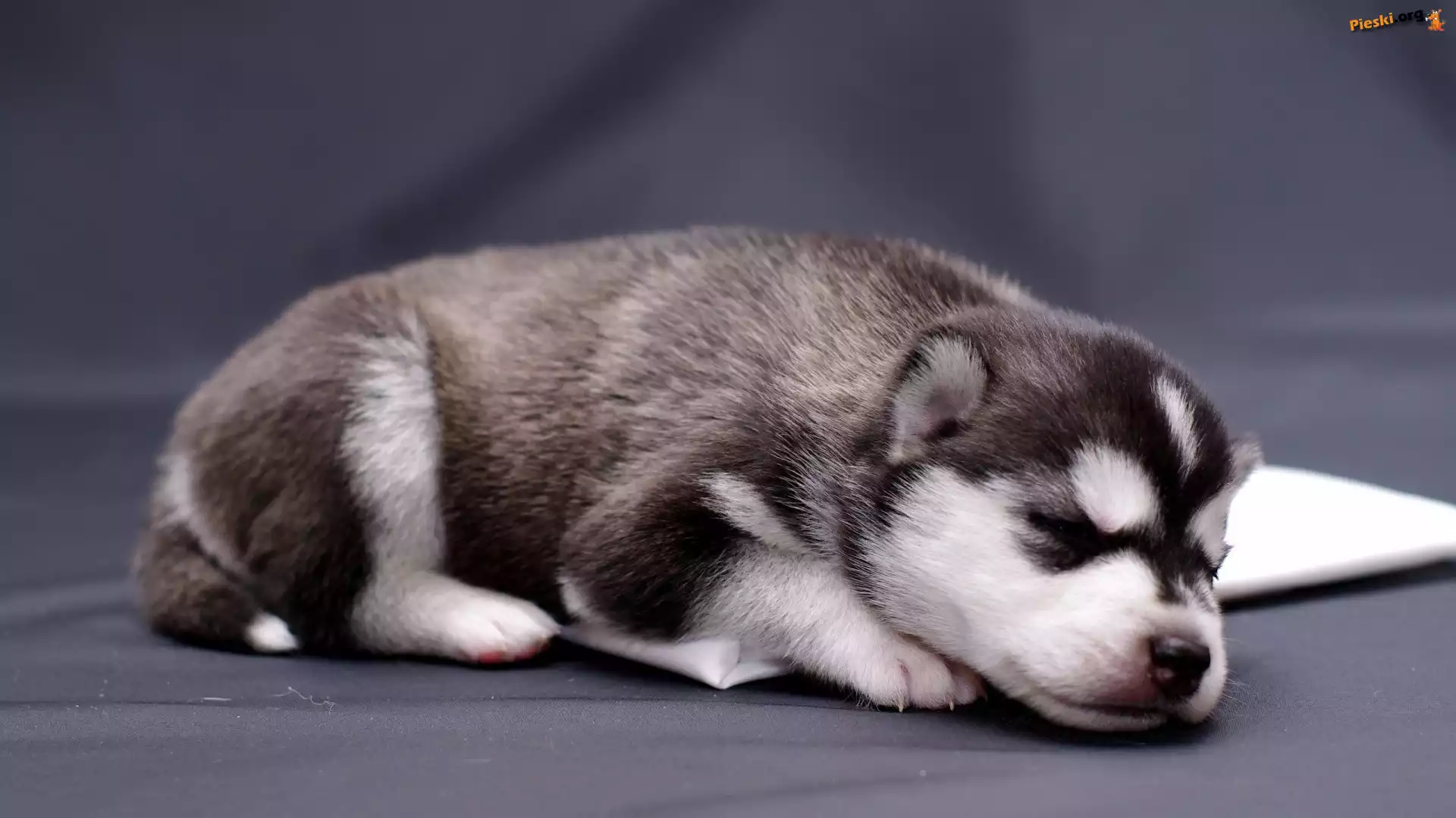 Śpiący, Szczeniak, Siberian Husky, Pieski