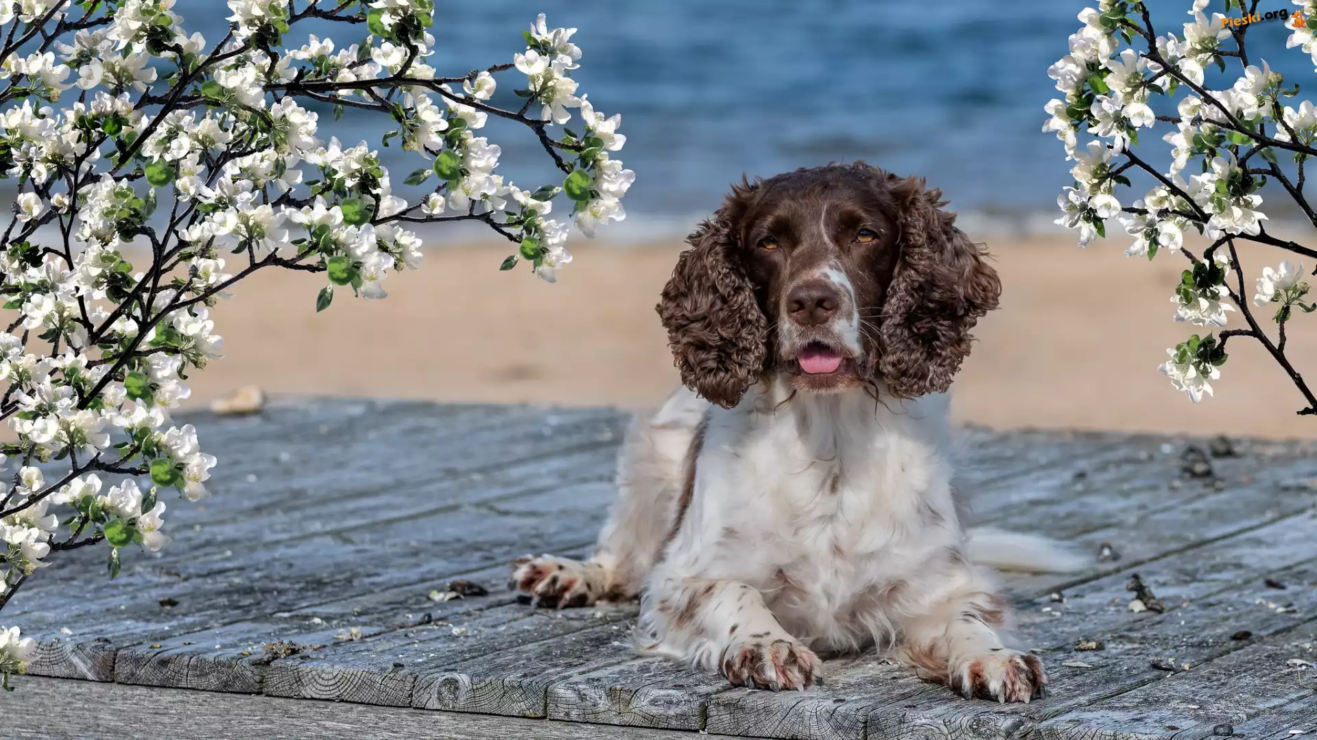 Okwiecone, Springer spaniel angielski, Pies, Deski, Gałązki