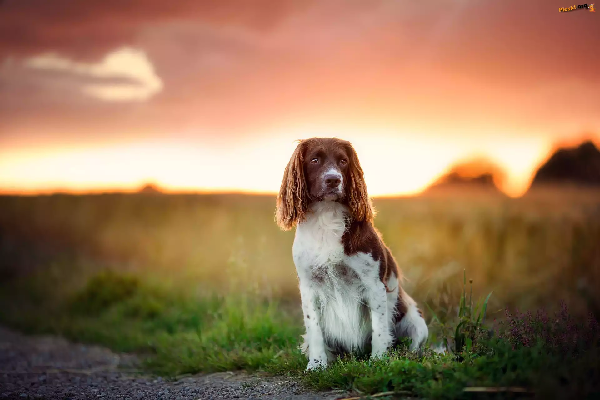 Springer spaniel walijski, Pole, Trawa, Pieski