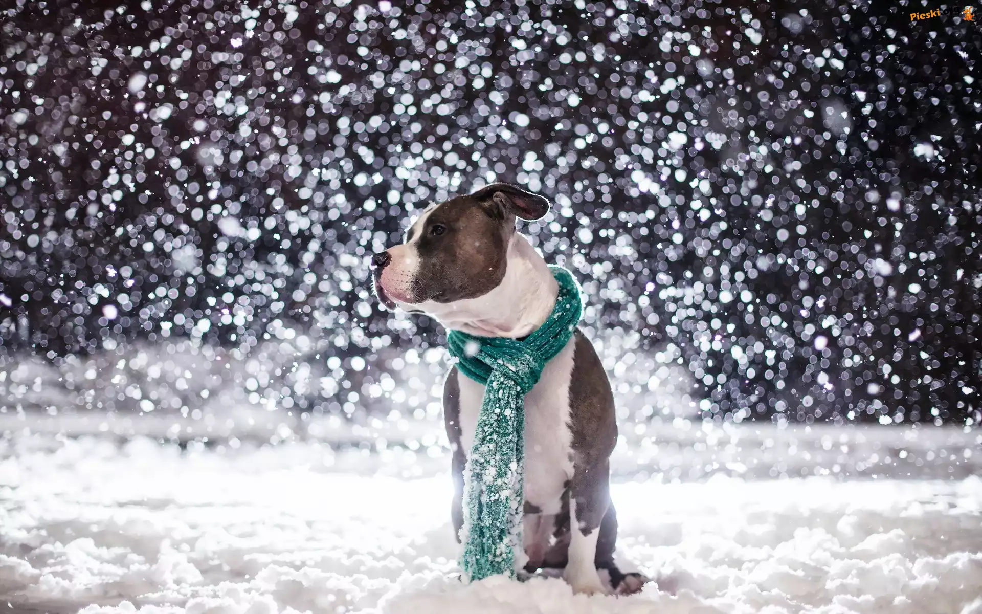 Zima, Szalik, Pies, Śnieg, Amstaff, Pieski