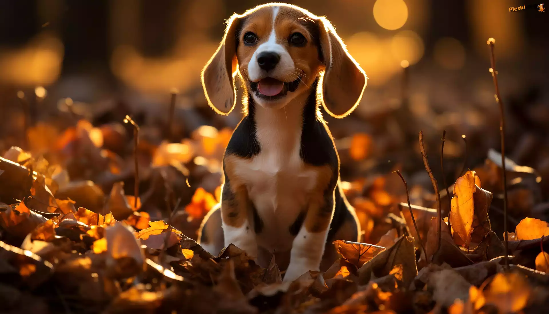 Grafika AI, Beagle, Szczeniak, Pies, Jesień, Liście