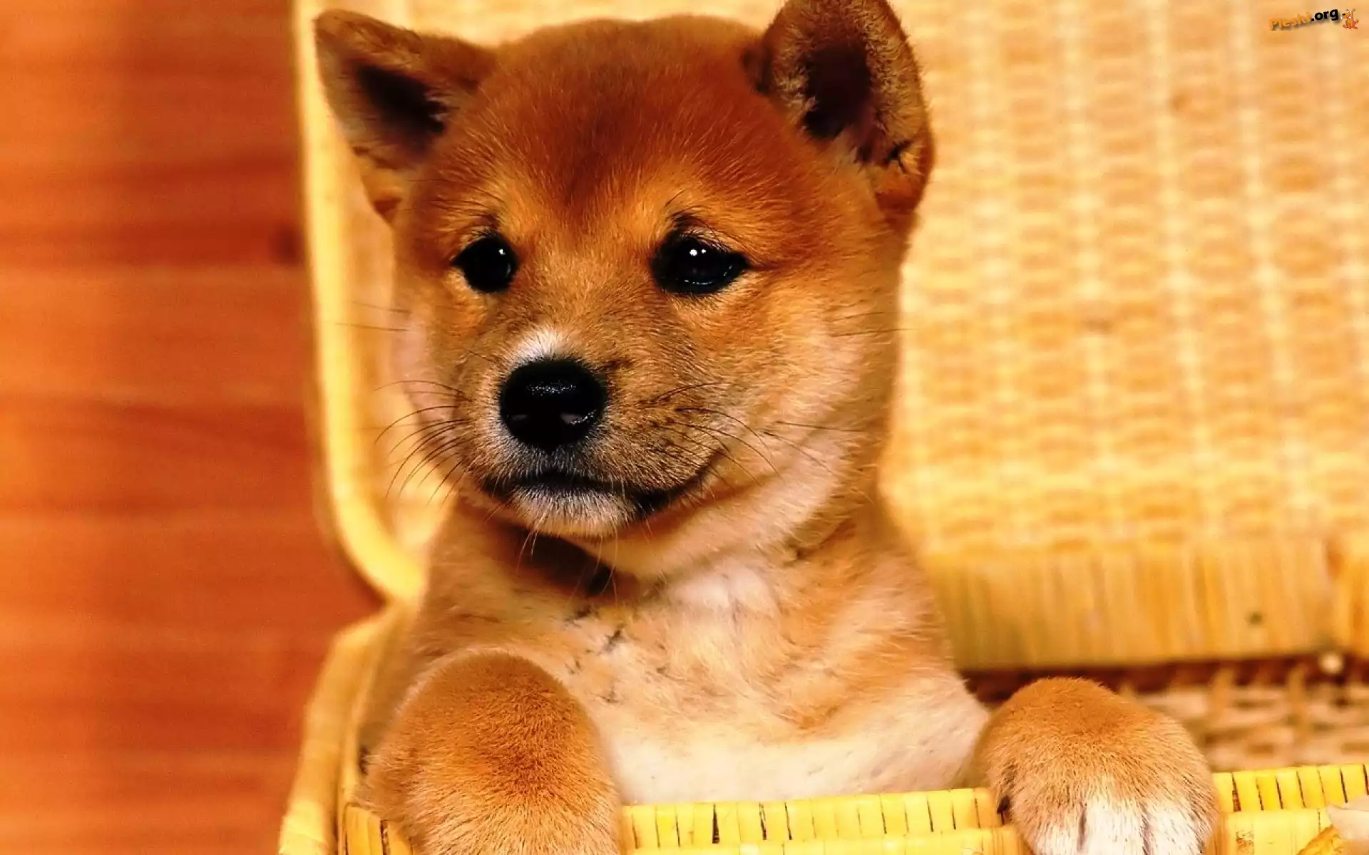 Szczeniak, Shiba Inu, Kosz, Pieski