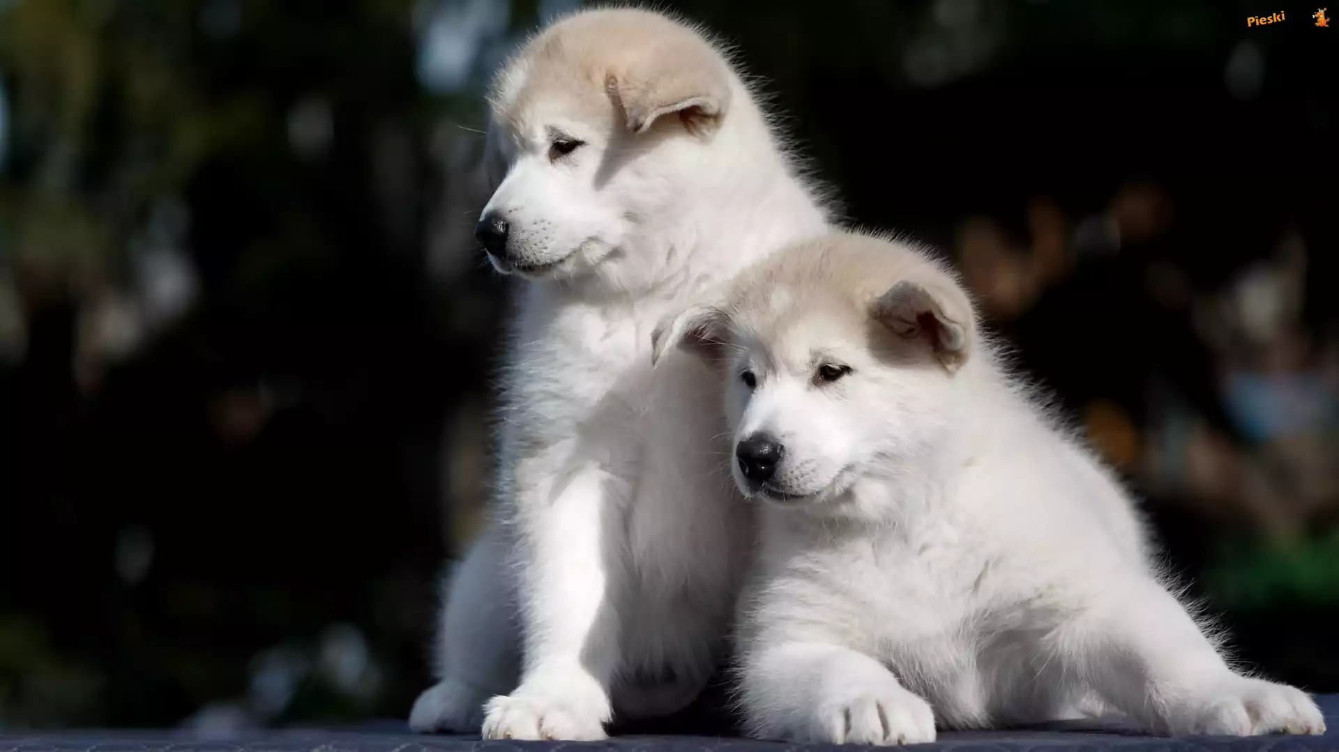 Szczeniaki, Dwa, Białe, Akita inu, Pieski