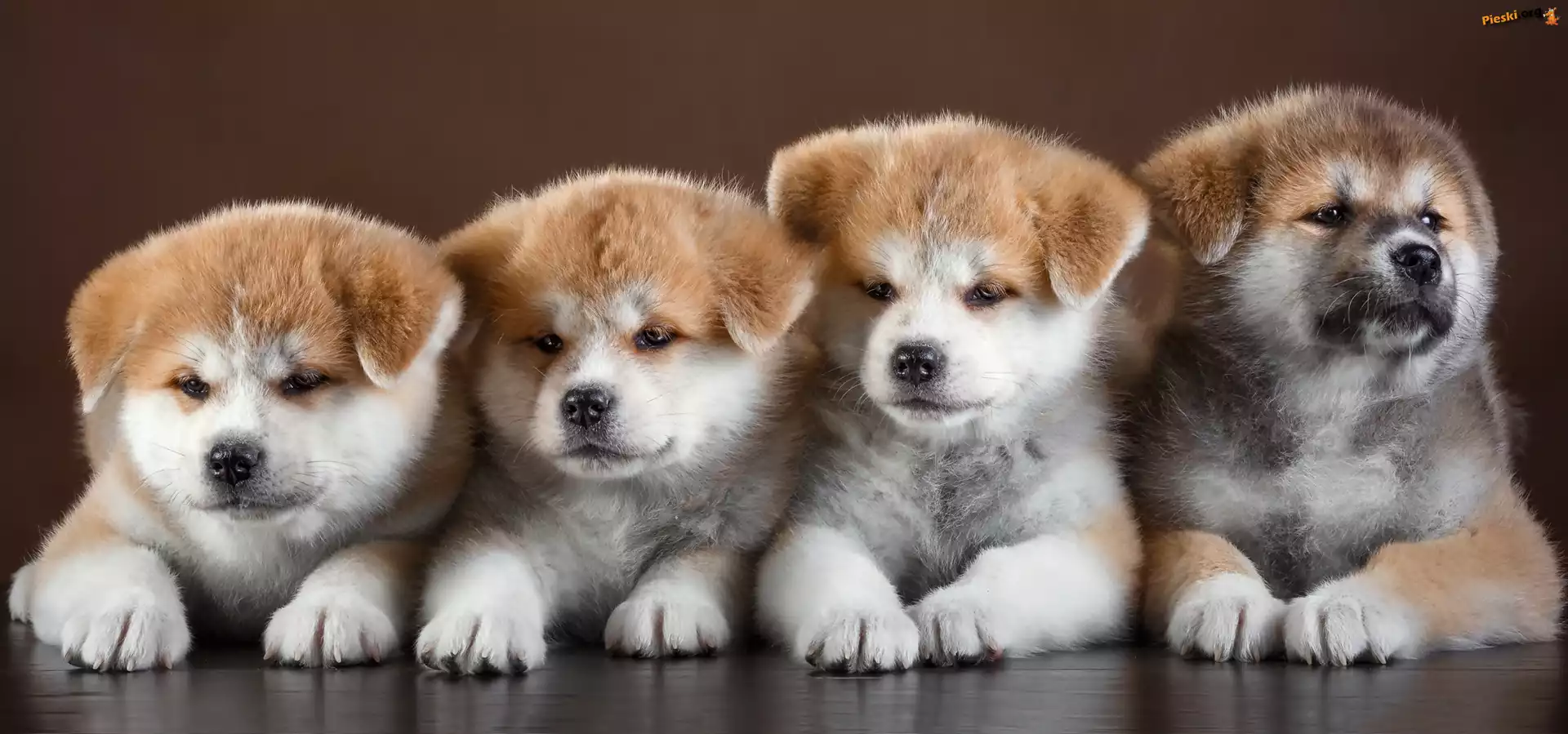 Szczeniaki, Cztery, Słodkie, Akita inu