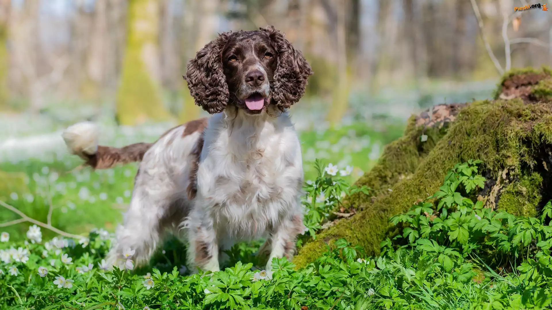 Trawa, Pies, Springer spaniel angielski, Mech, Pieski