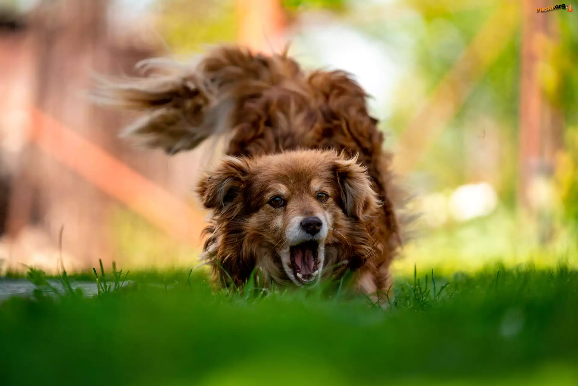 Trawa, Kudłaty, Pies, Rozmyte tło, Pieski