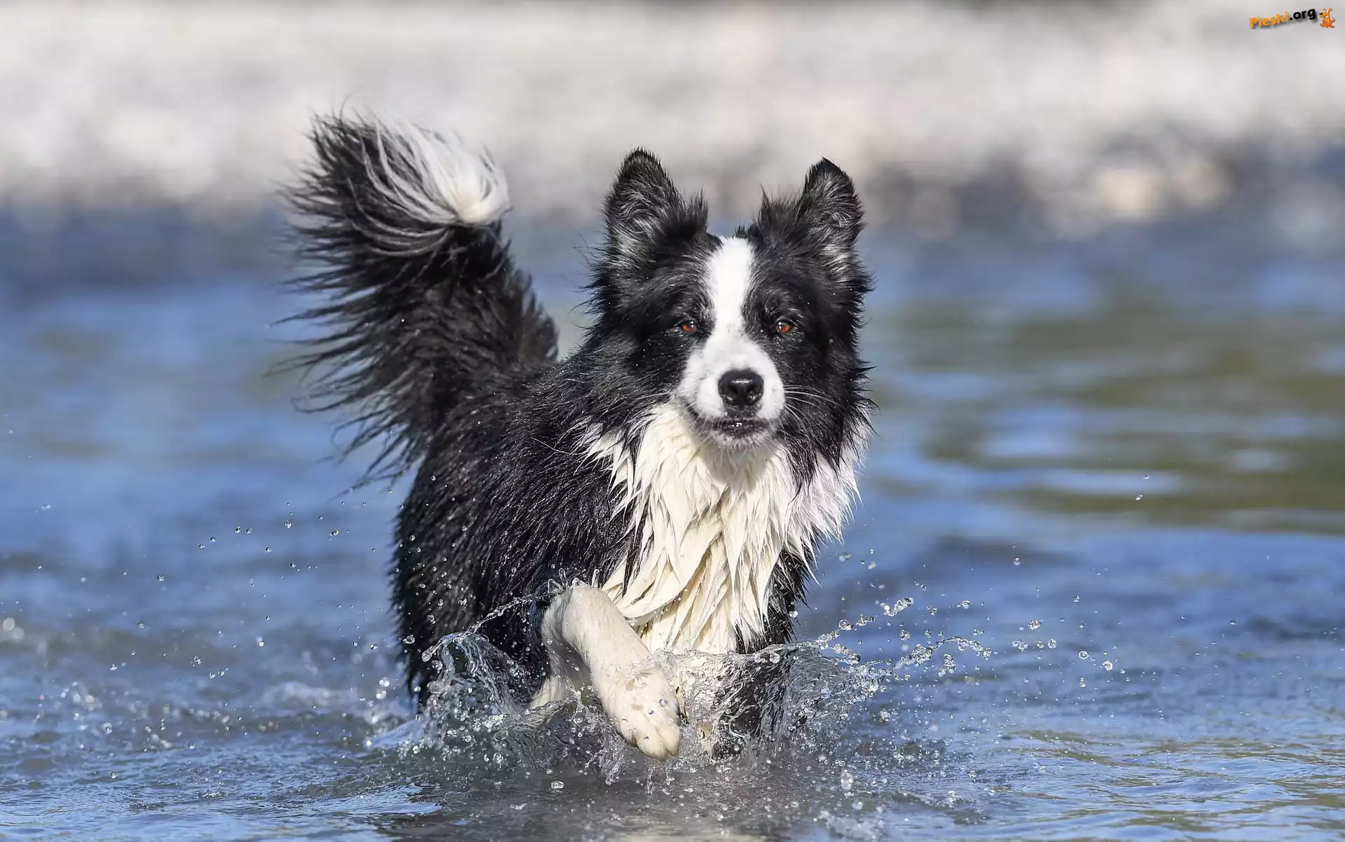 Woda, Pies, Biegnący, Border collie, Rozprysk, Pieski