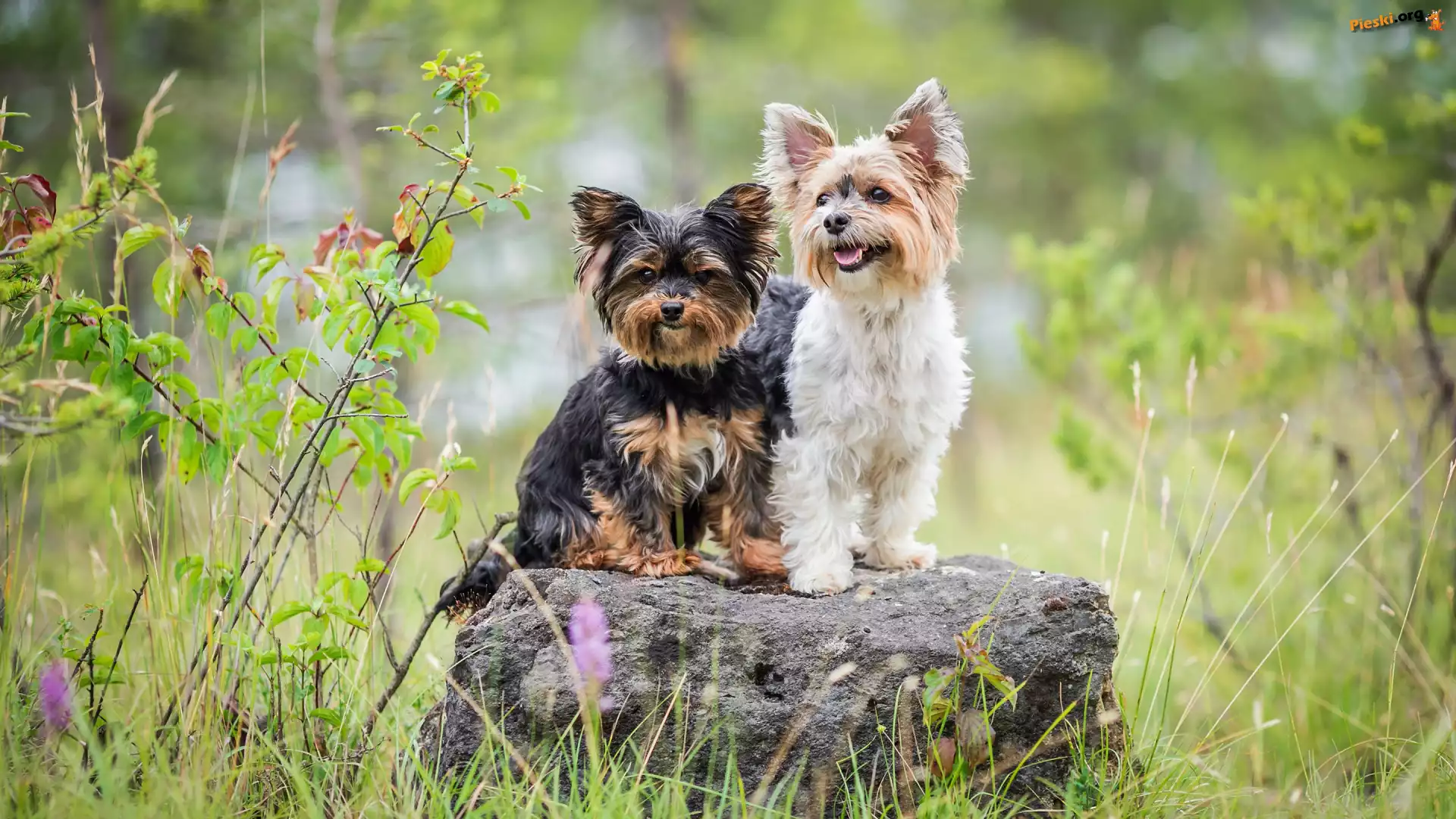 Yorkshire terrier, Dwa, Psy, Kamień