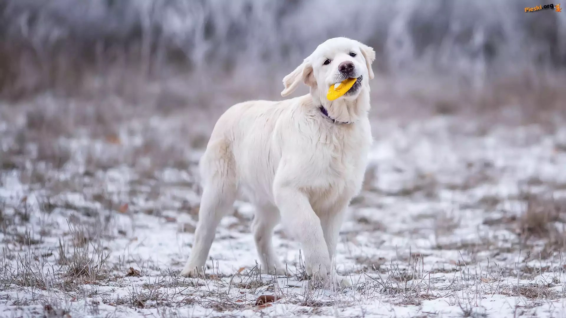Zabawka, Szczeniak, Golden retriever, Śnieg, Pieski